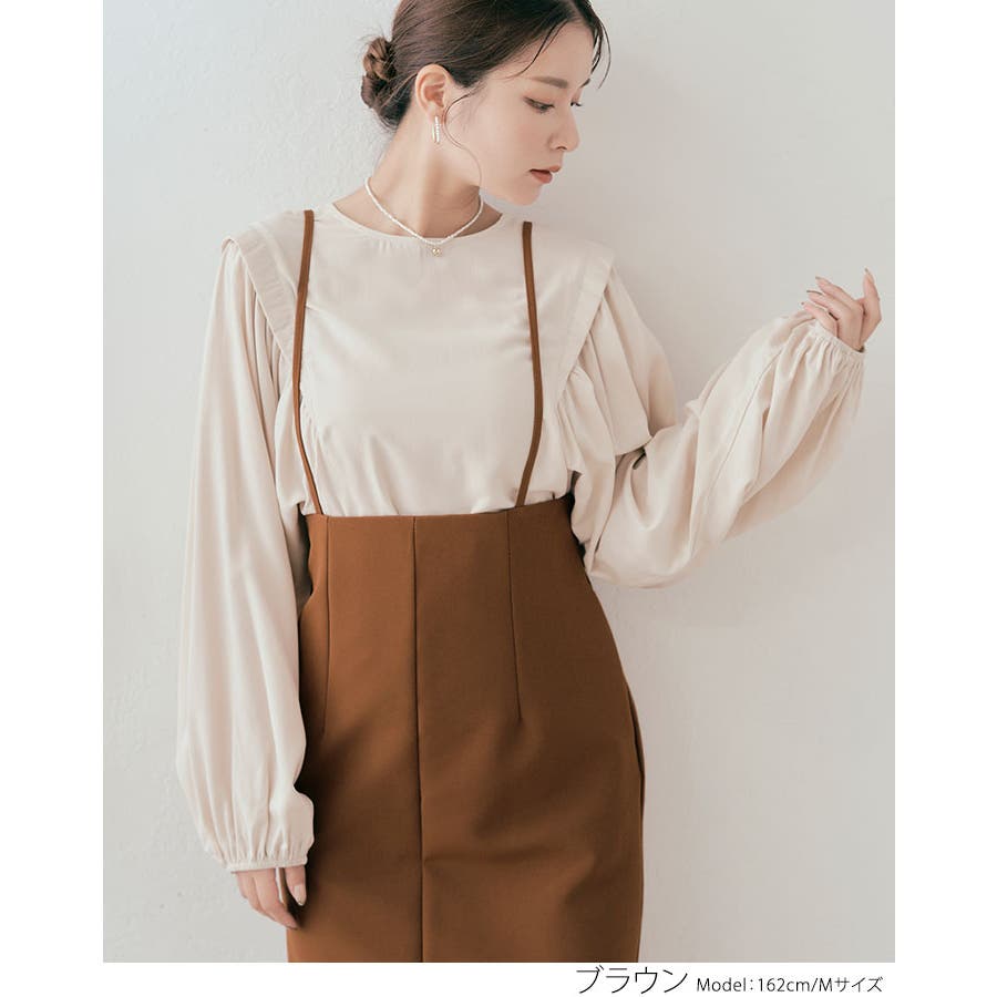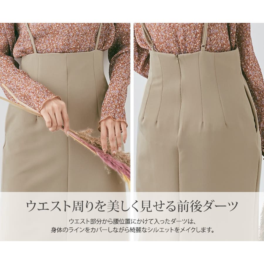●洗練されたストレートシルエットが魅力のサスペンダースカート。