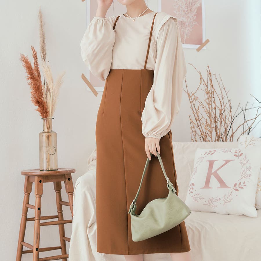 サスペンダーストレートスカート 2サイズ ボトムス