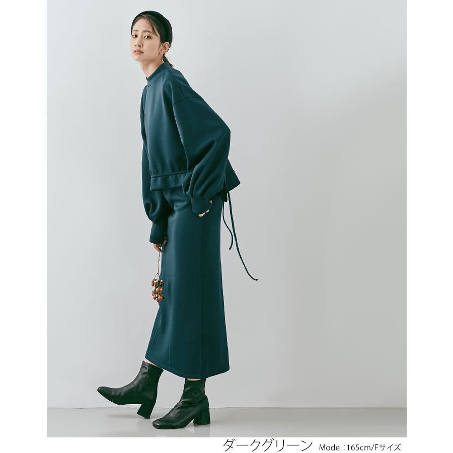 ●スウェットライクな抜け感がありながら、クリーンな印象の素材や上品シルエットが、女性らしい着こなしを演出。