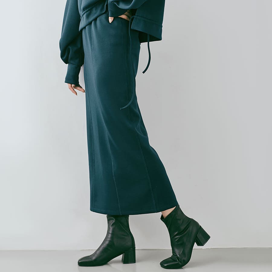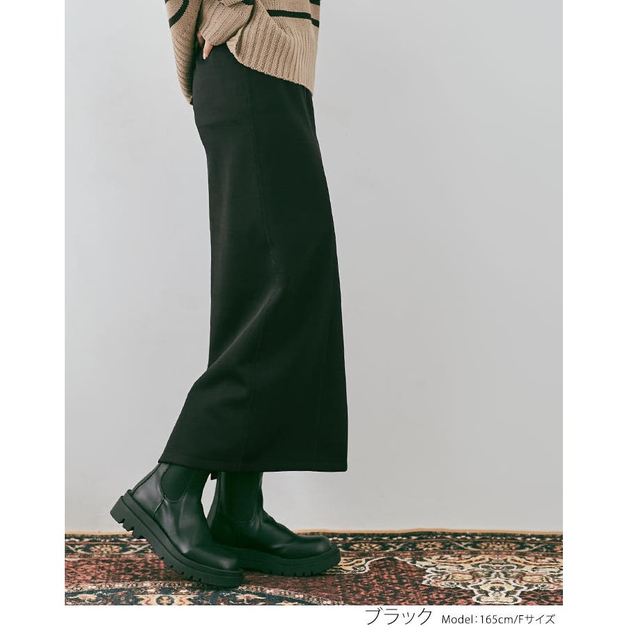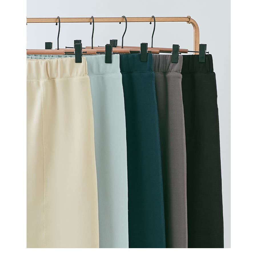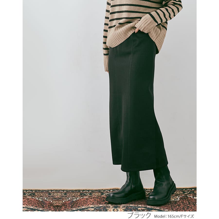 ●美ラインをメイクするストレートシルエット。ぴたっとし過ぎない程よいタイトさと適度な肉感の生地が、身体のラインをカバーして綺麗なシルエットをつくります。