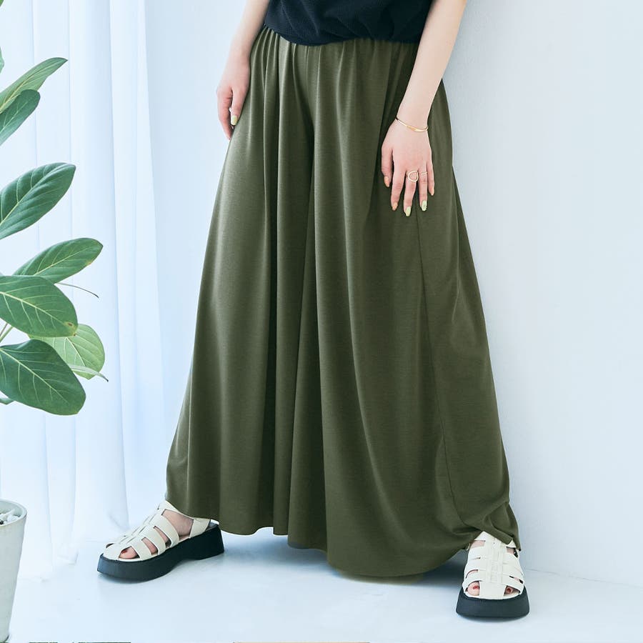 スカートのようなワイドフレアロングパンツ ガウチョパンツ ワイドパンツ