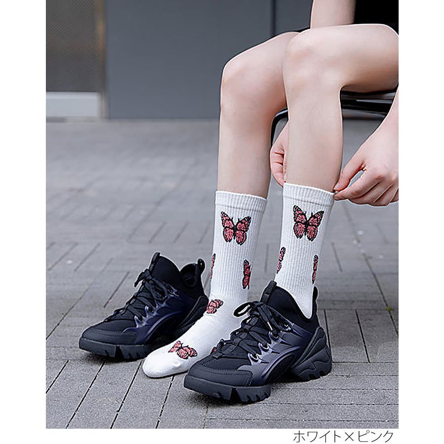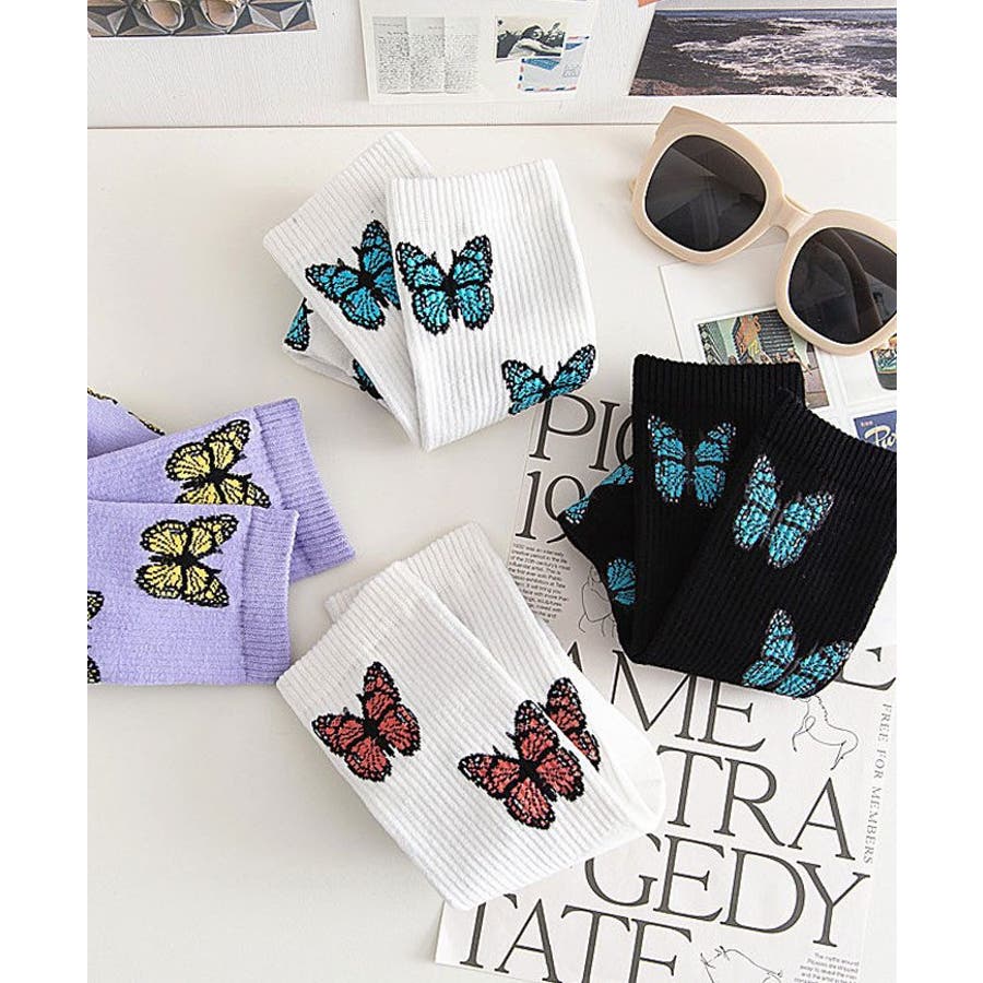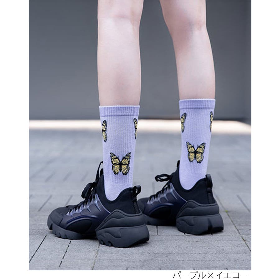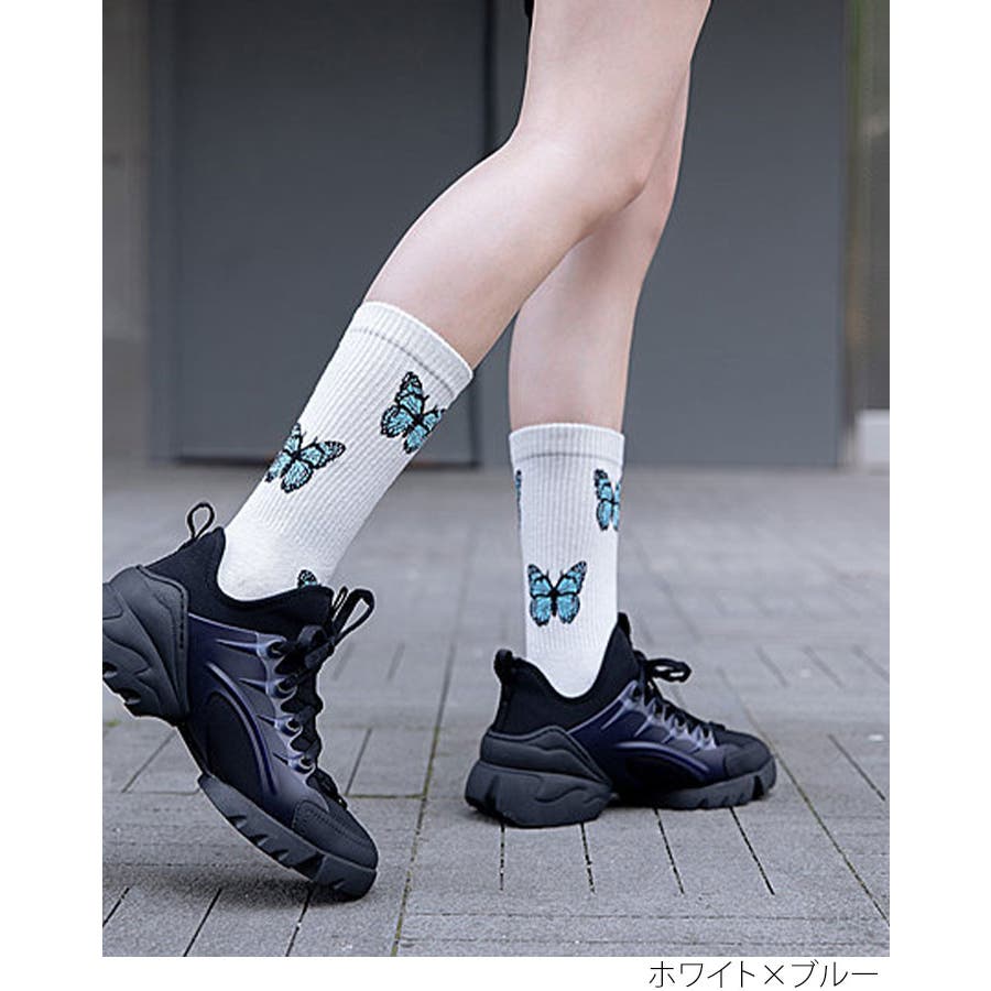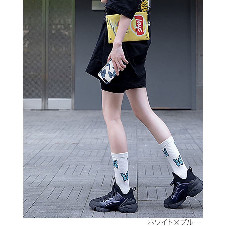 ●おしゃれは足元から♪配色の蝶柄が可愛らしいミディアムソックス。