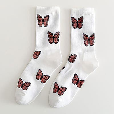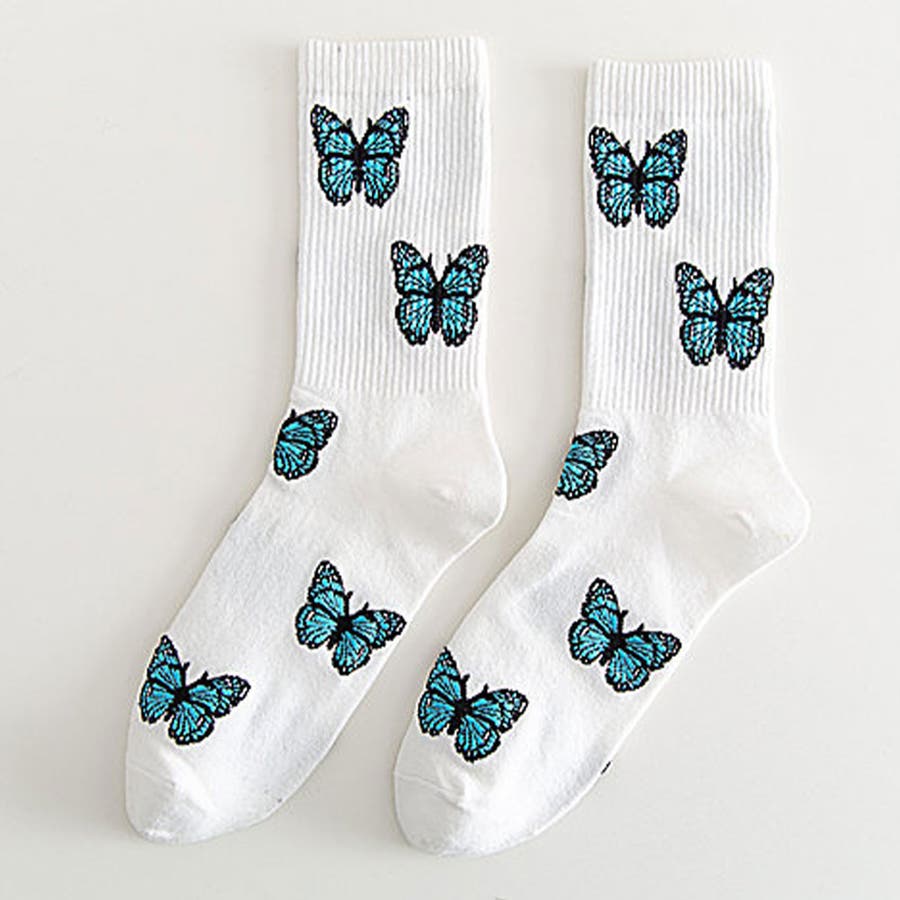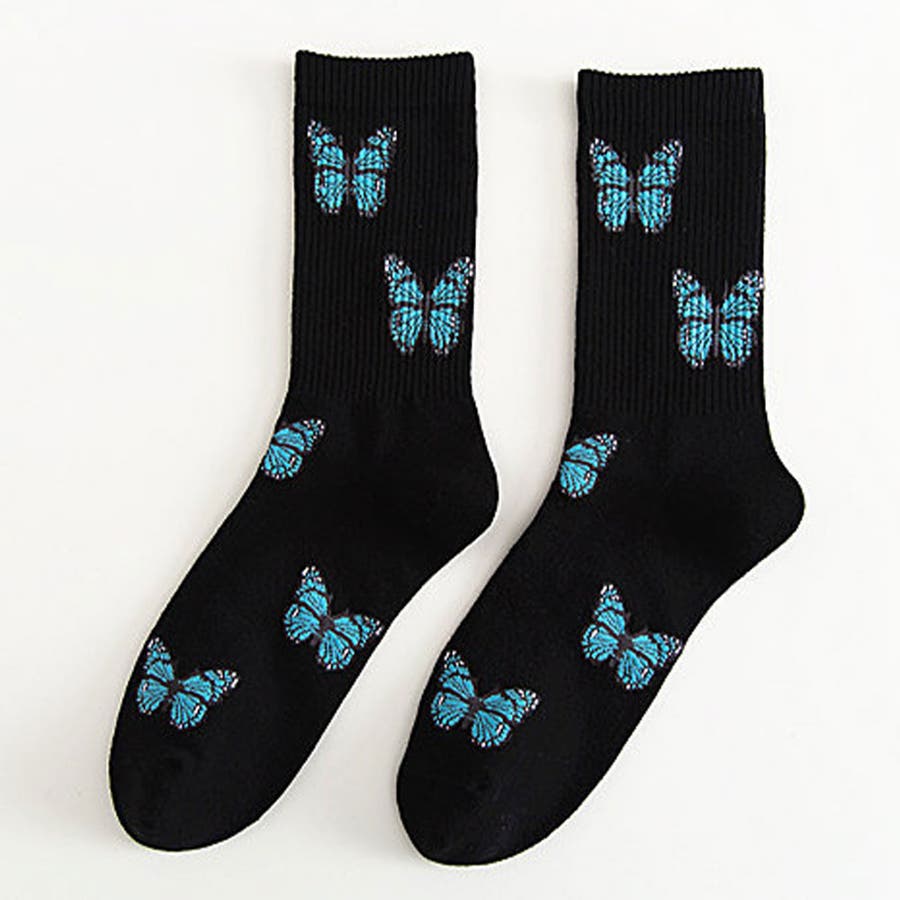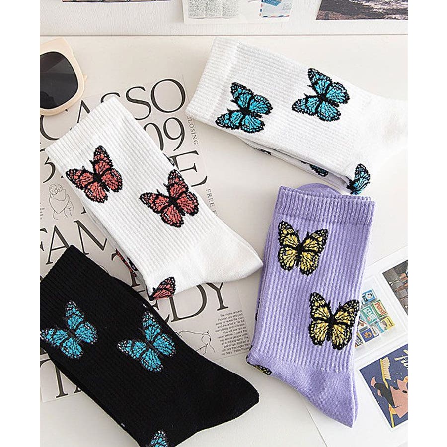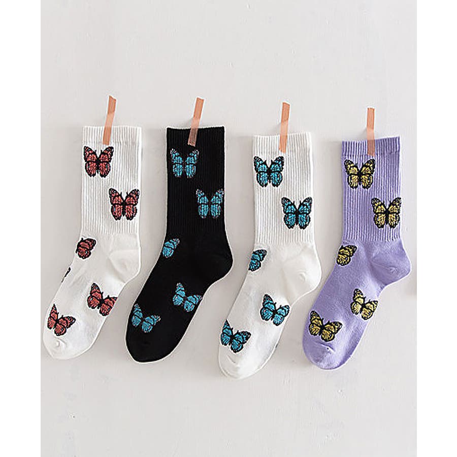 ●おしゃれは足元から♪配色の蝶柄が可愛らしいミディアムソックス。
