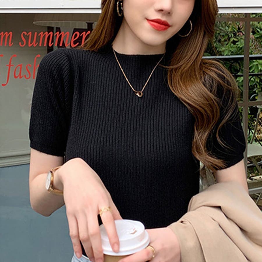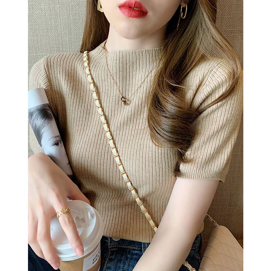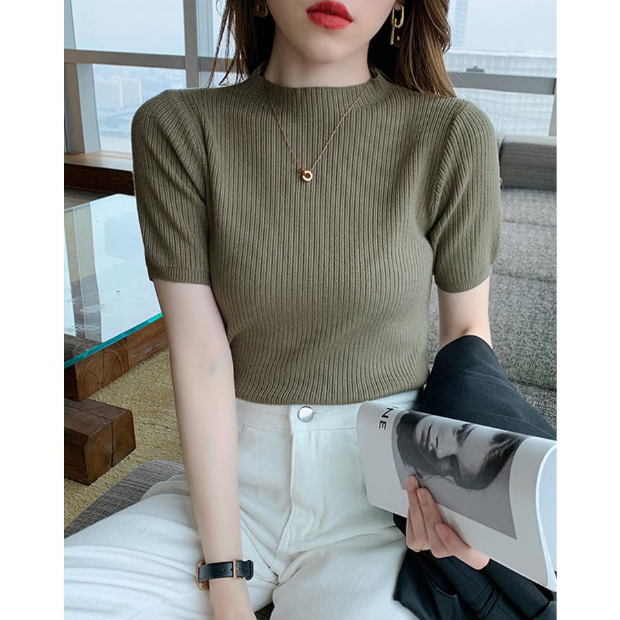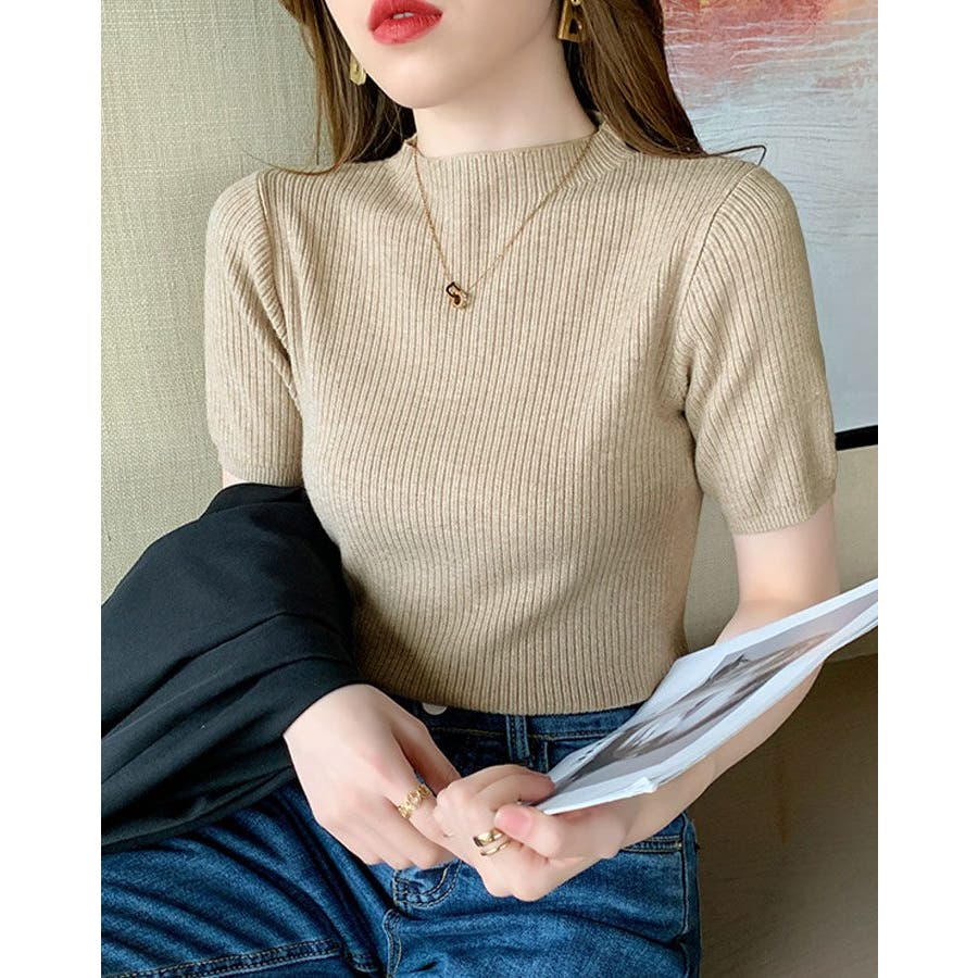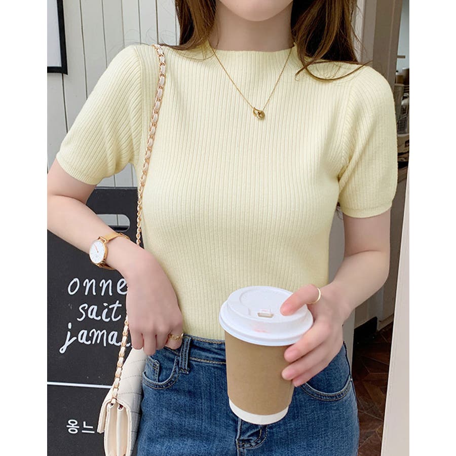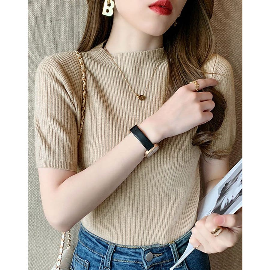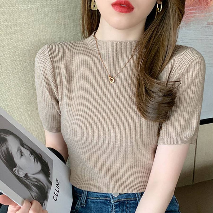 【SHOPLIST限定】プチハイネックサマーリブニット トップス リブニット