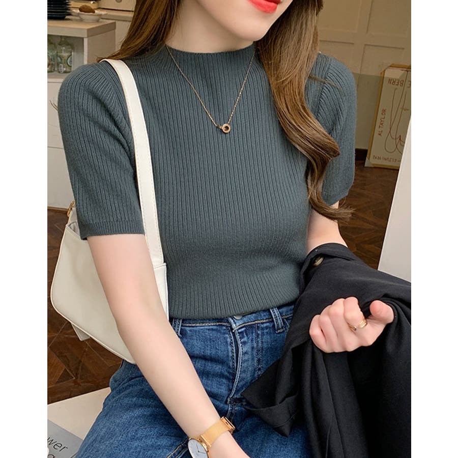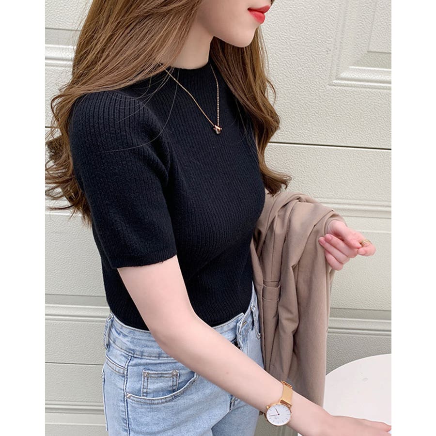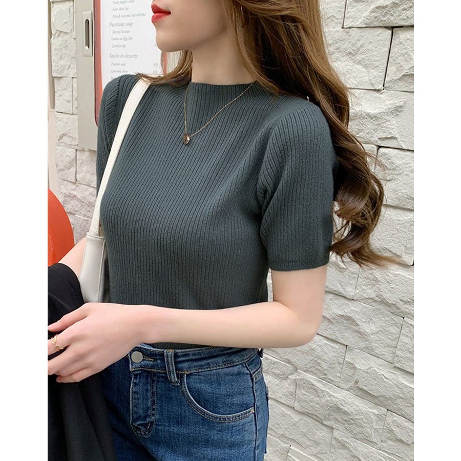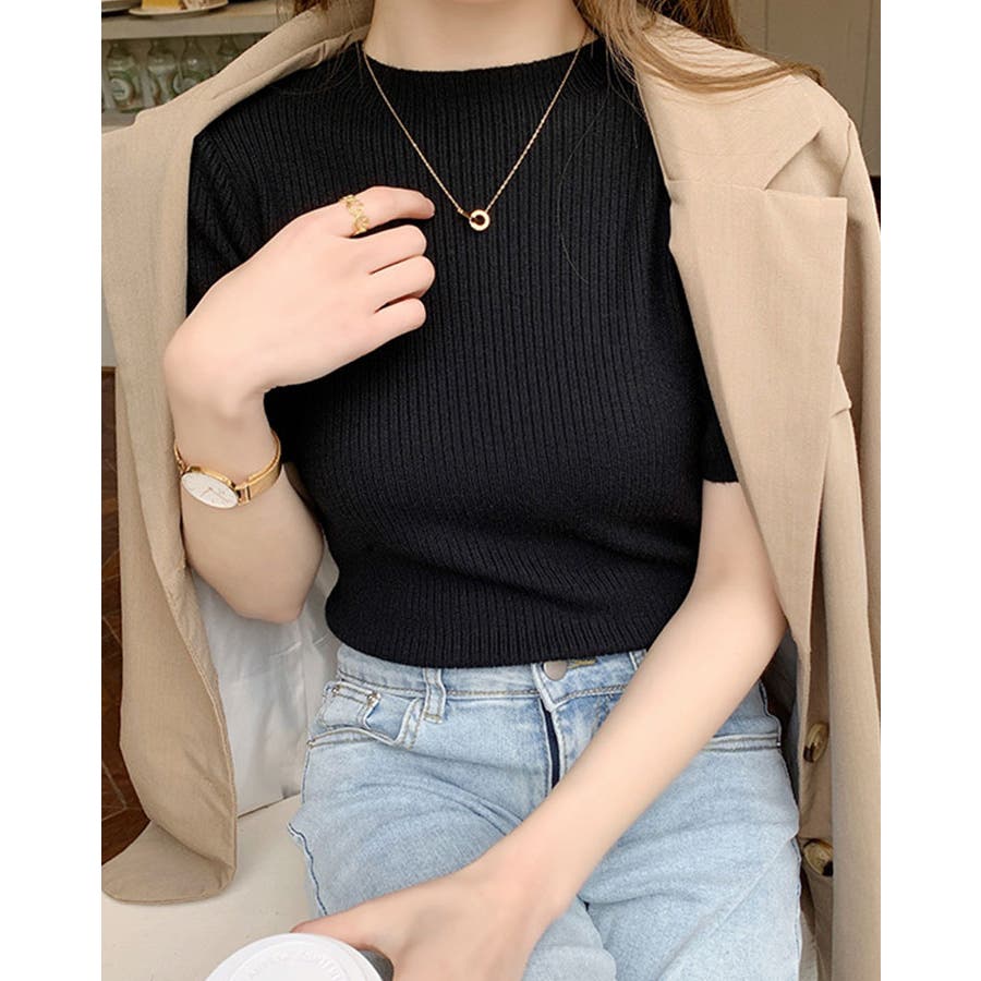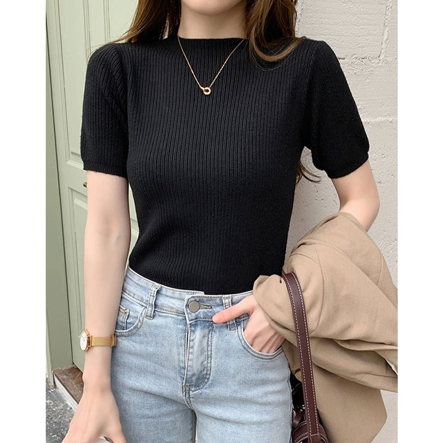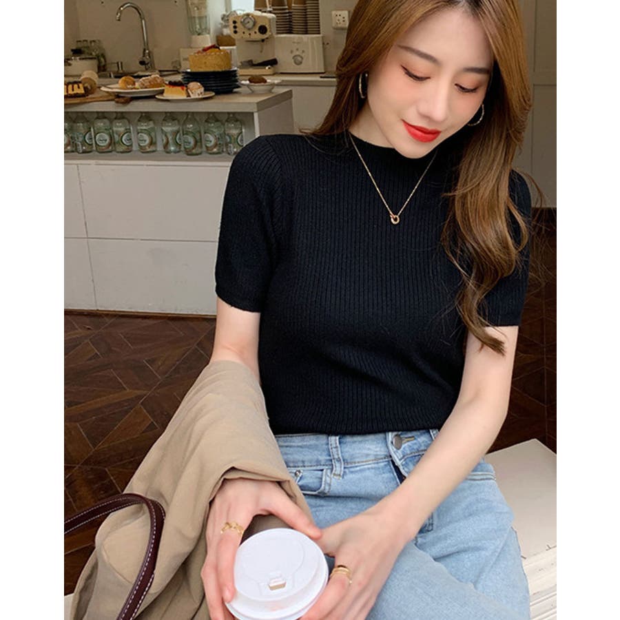 【SHOPLIST限定】プチハイネックサマーリブニット トップス リブニット
