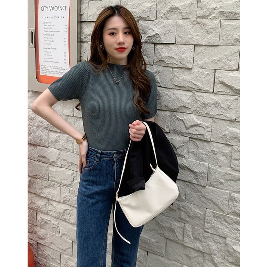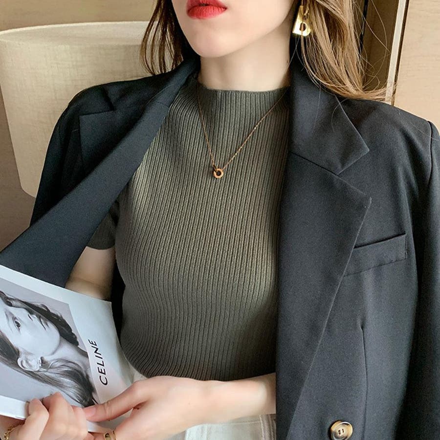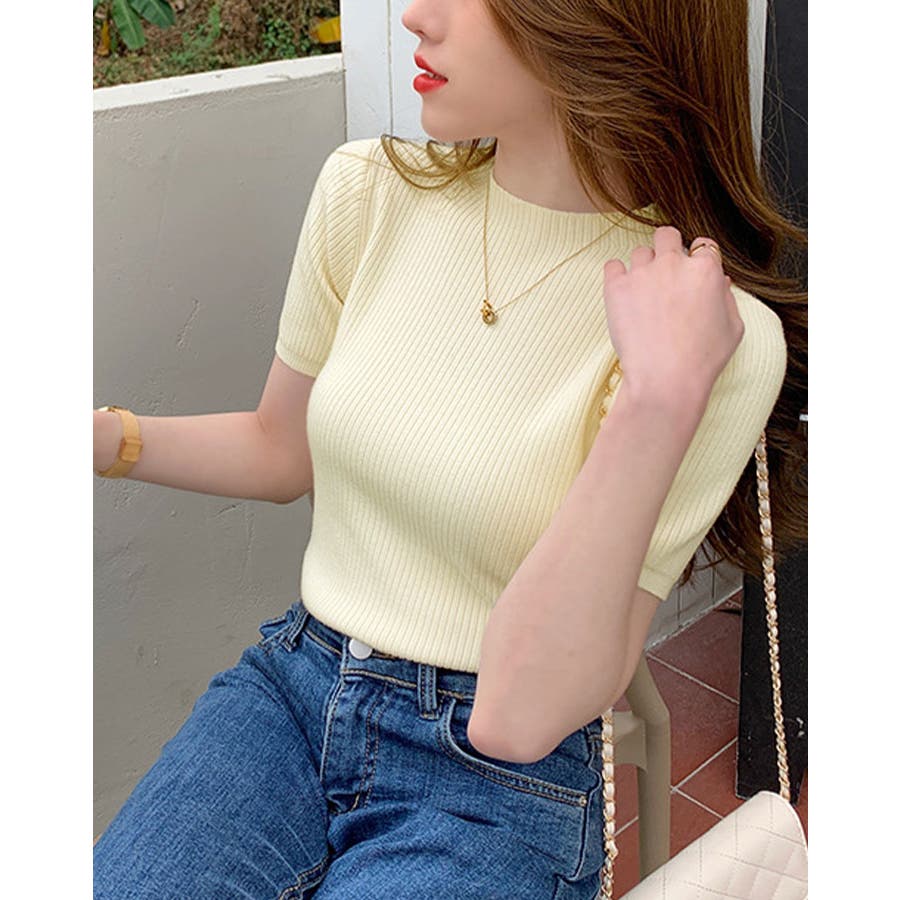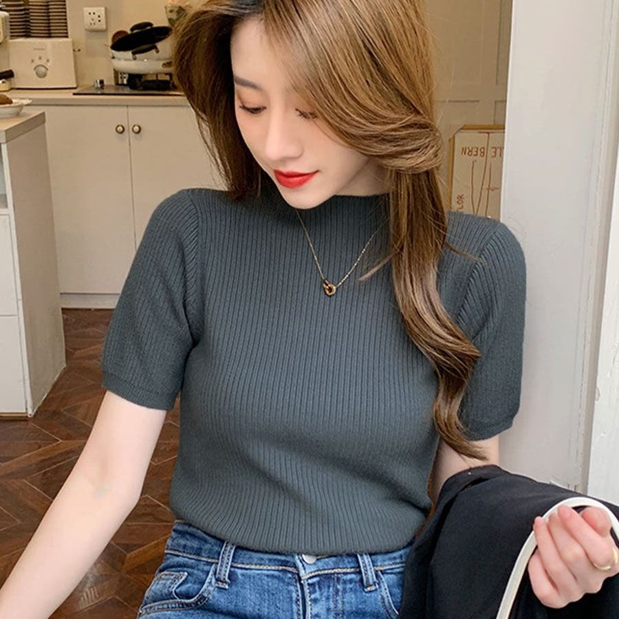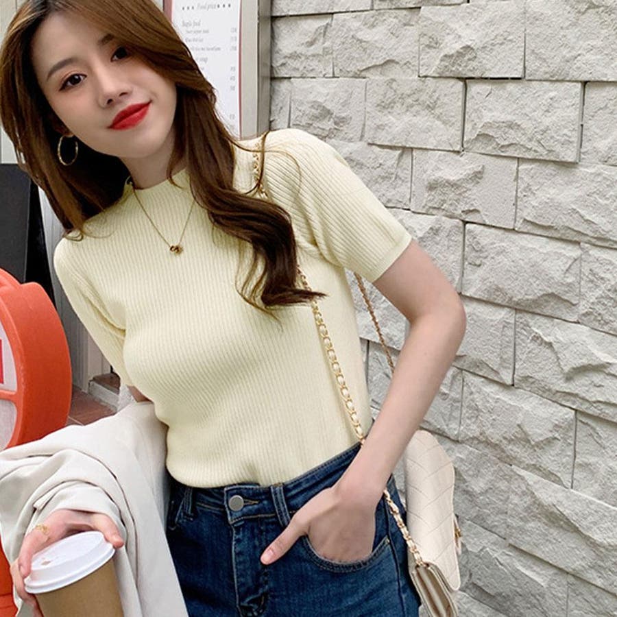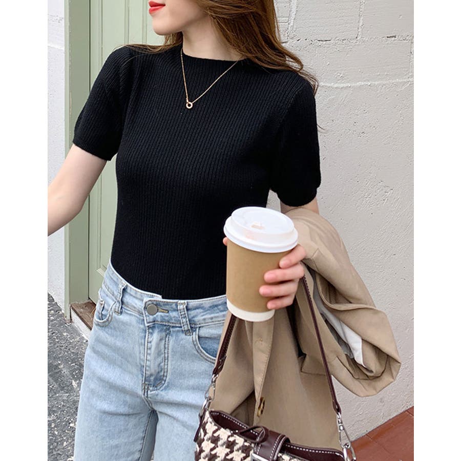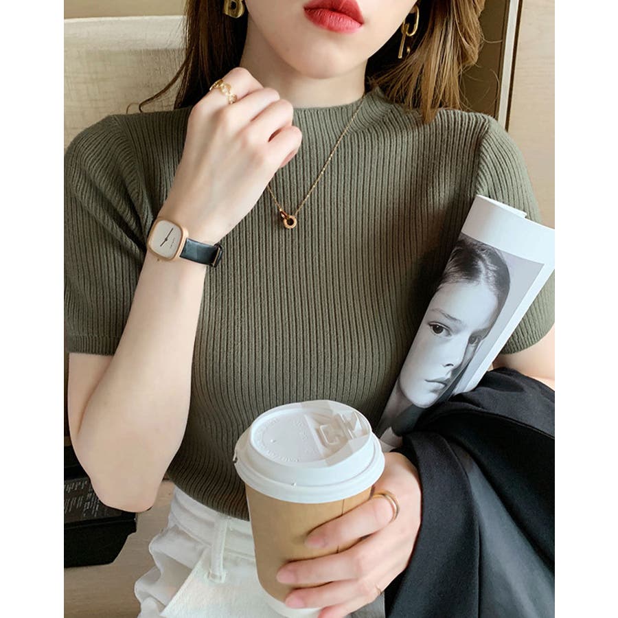 【SHOPLIST限定】プチハイネックサマーリブニット トップス リブニット