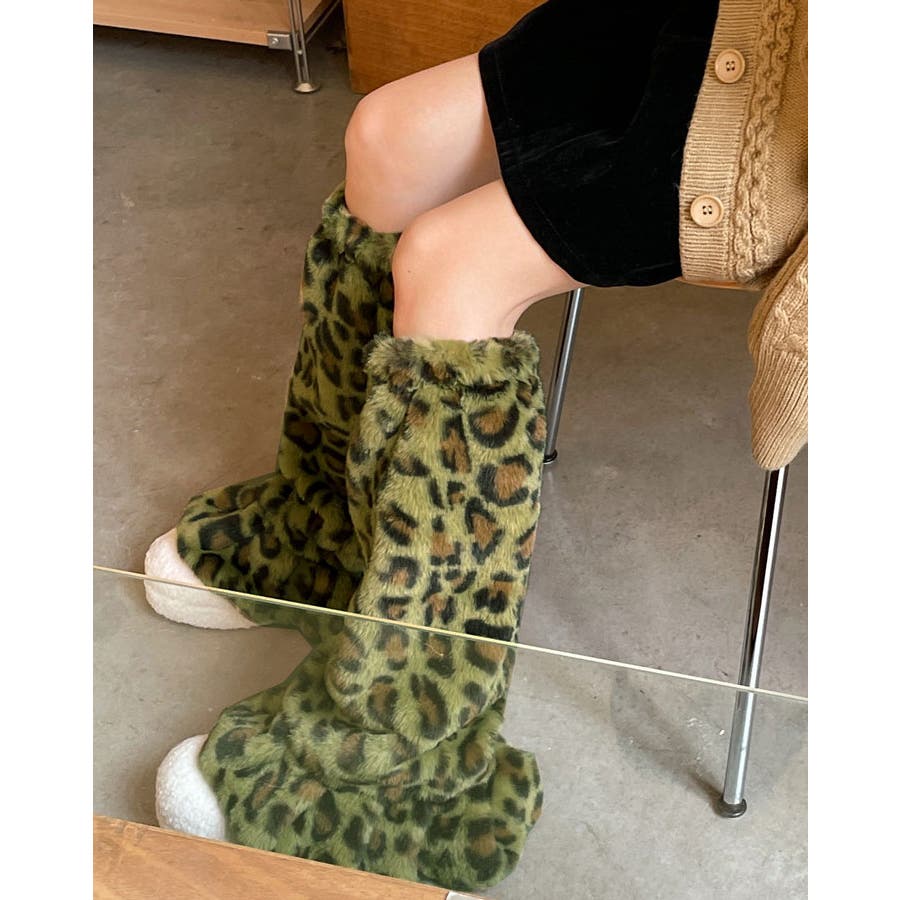 レオパード柄ファーレッグウォーマー レッグウォーマー 靴下