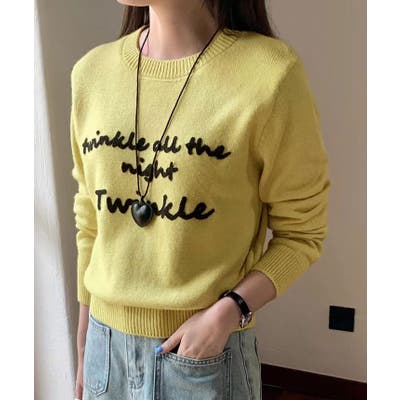 ラウンドネックメッセージニットトップス