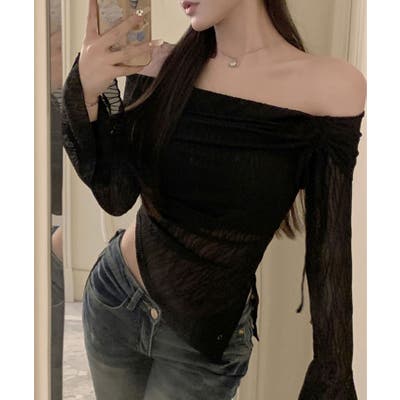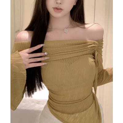 サイドギャザーオフショルダーレーストップス トップス カットソー