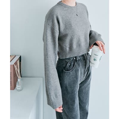 ショート丈のニットは、スカートにもパンツにもバランス良く合わせられる万能アイテム。