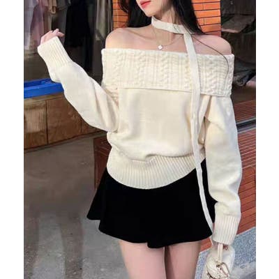 【オフショルダー】【ケーブル編み】【フェミニン】