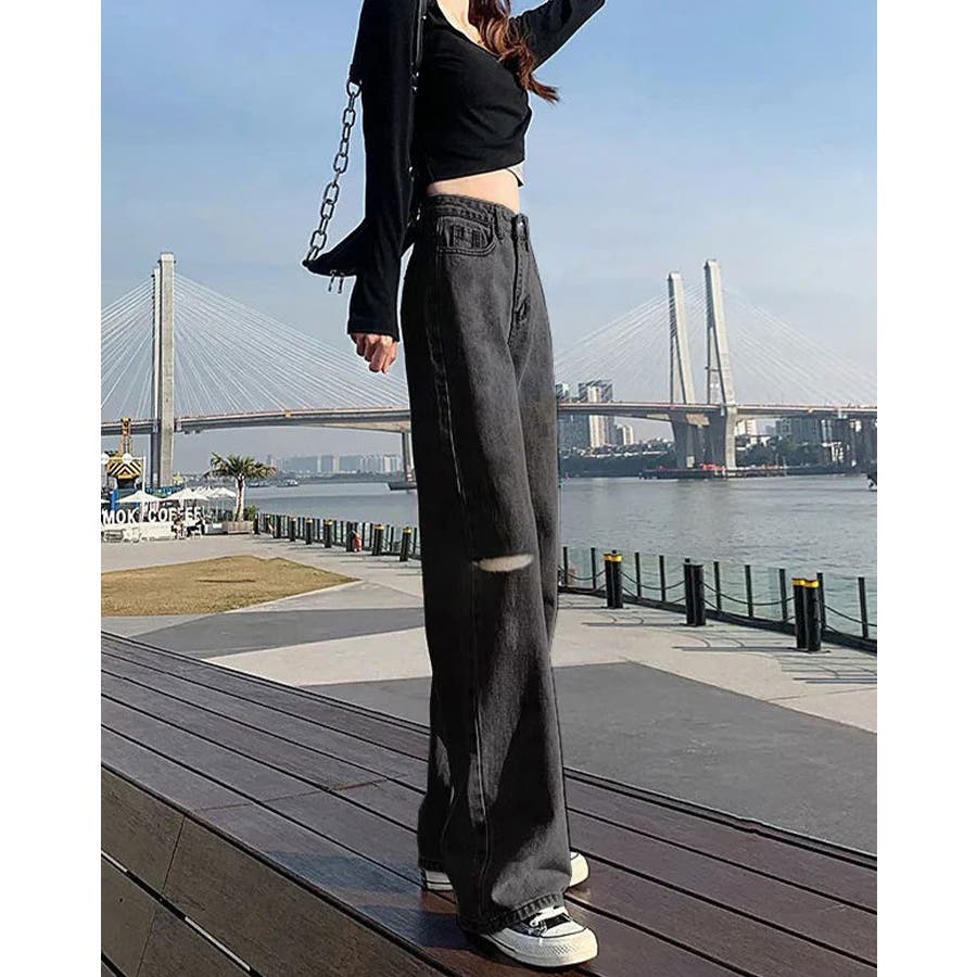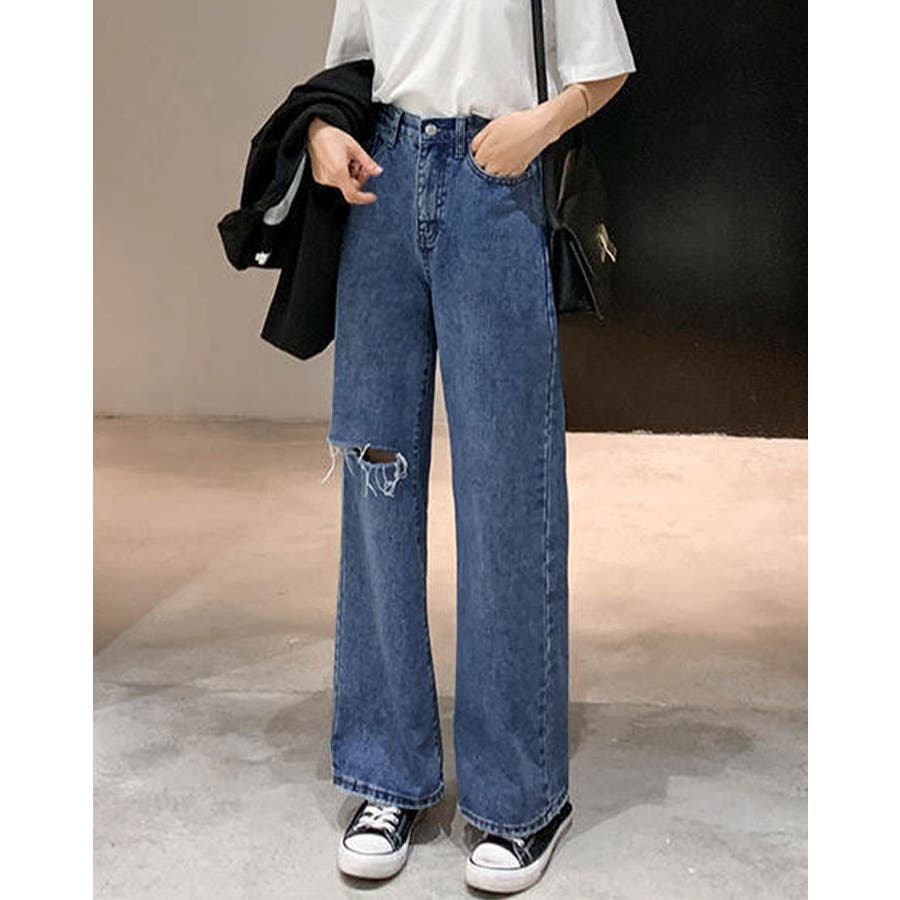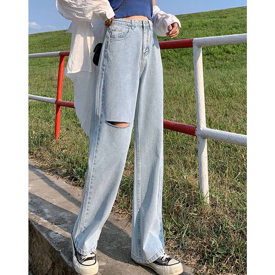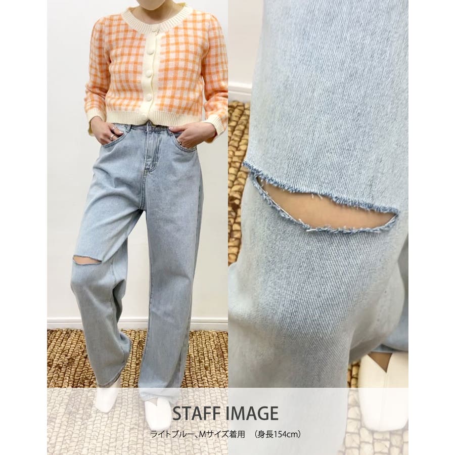 ダメージ加工デニムパンツ 5サイズ セミワイドデニムパンツ
