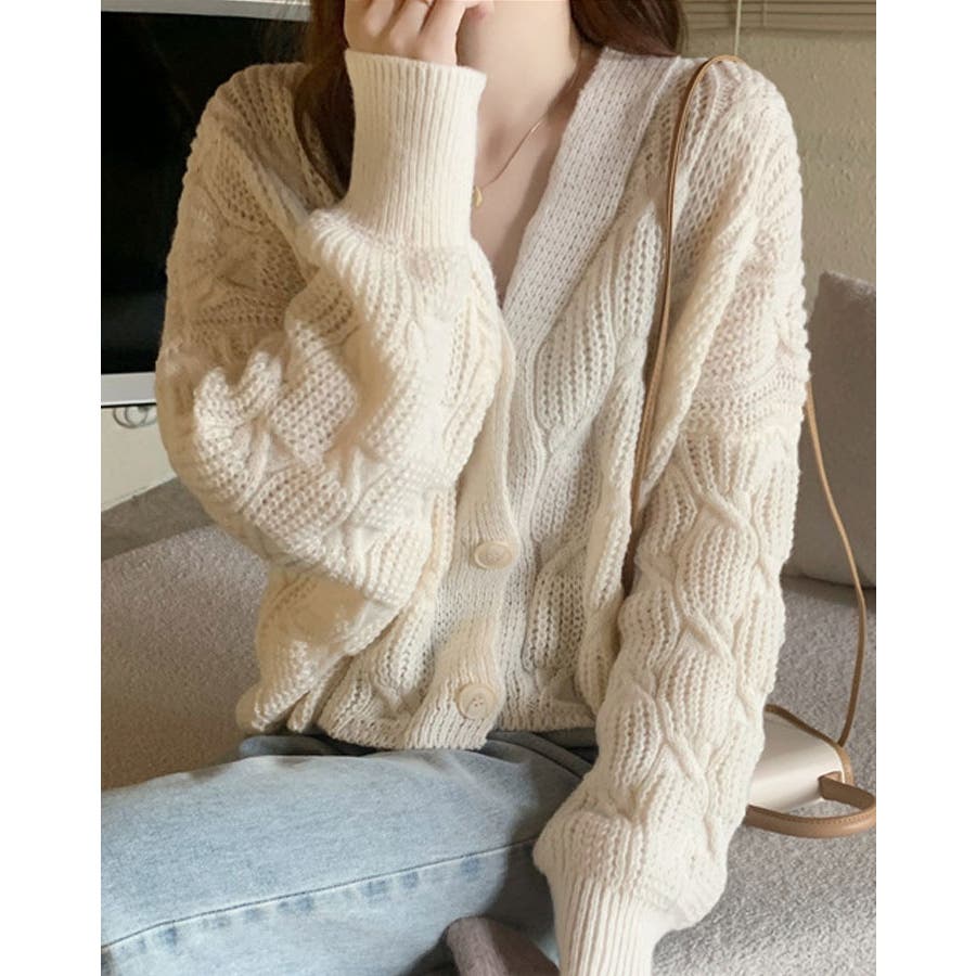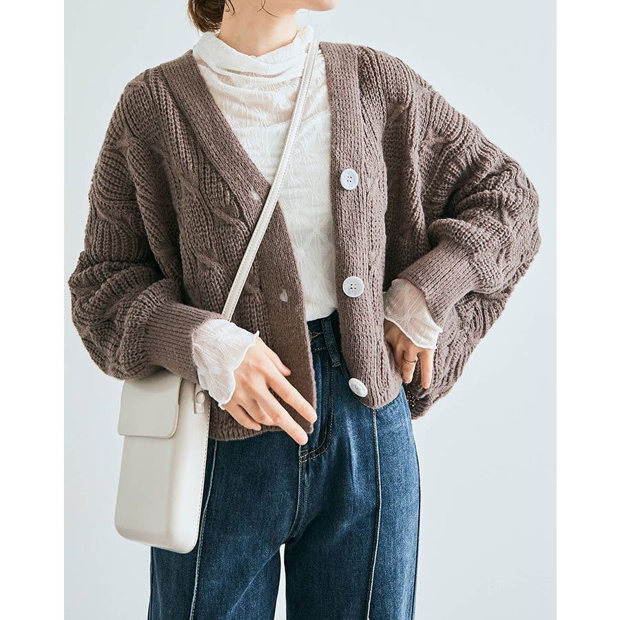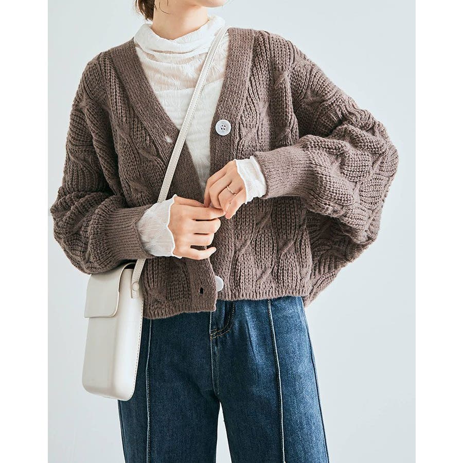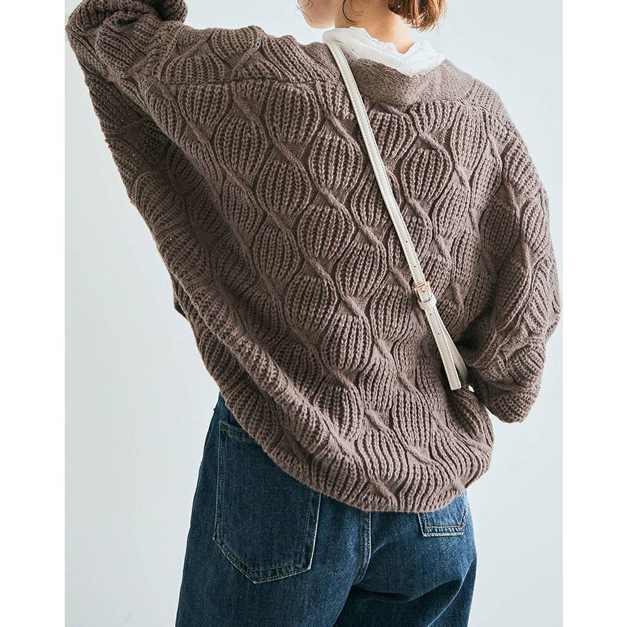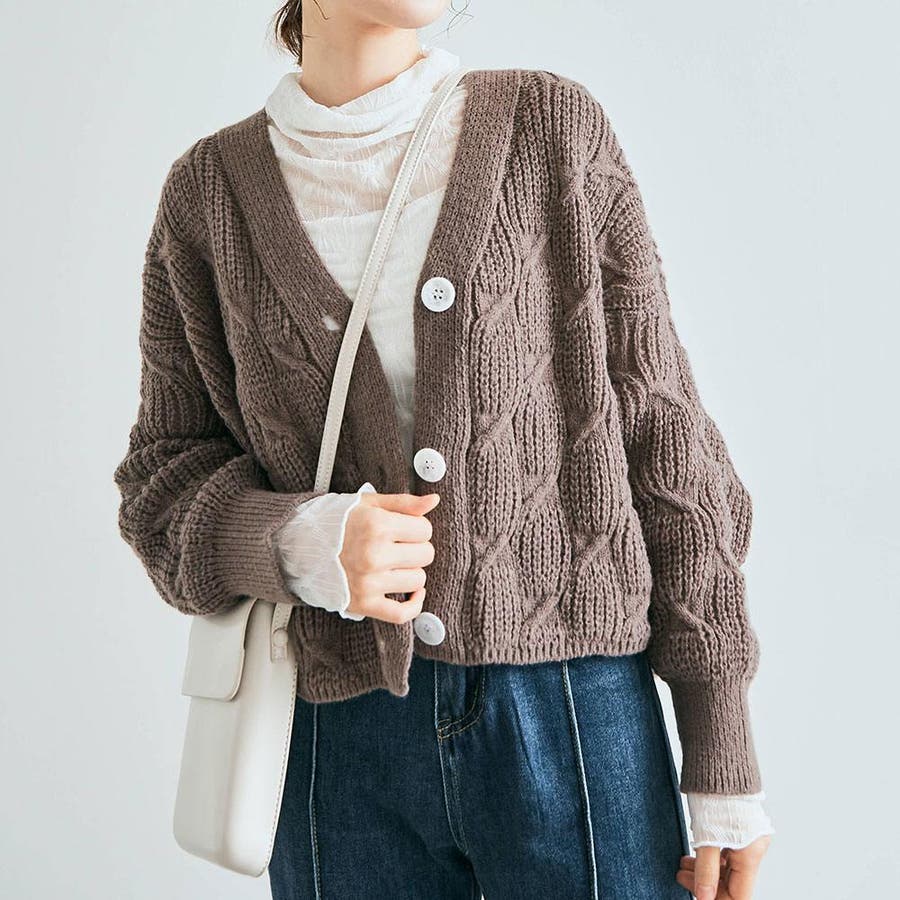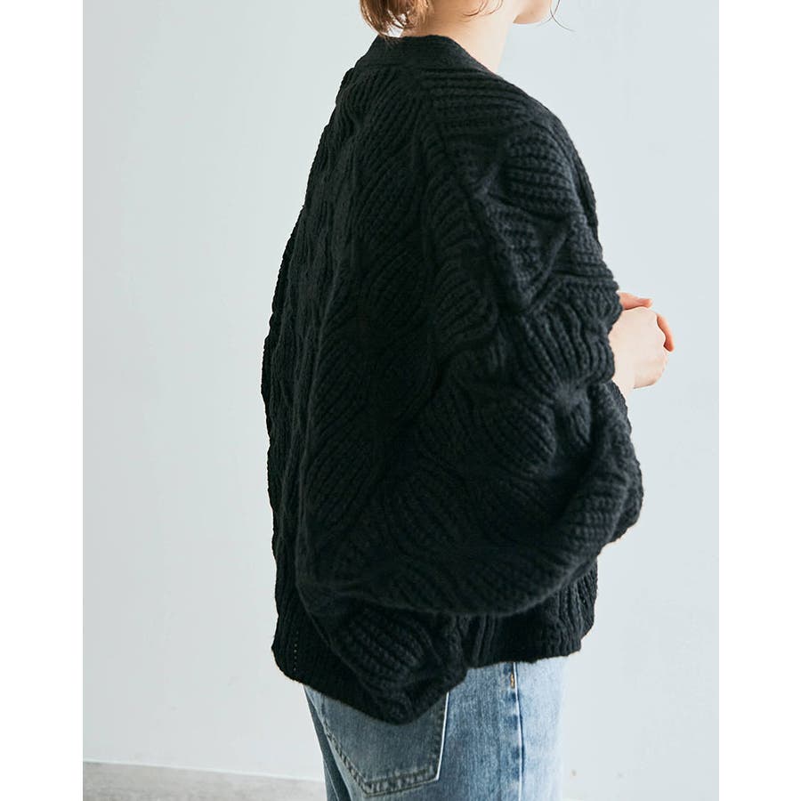 ざっくりした編み立てがこなれた印象◎ウェーブ編みケーブルニットカーディガン