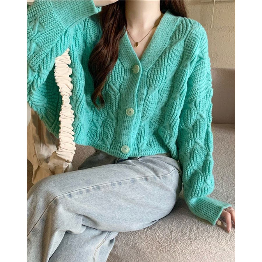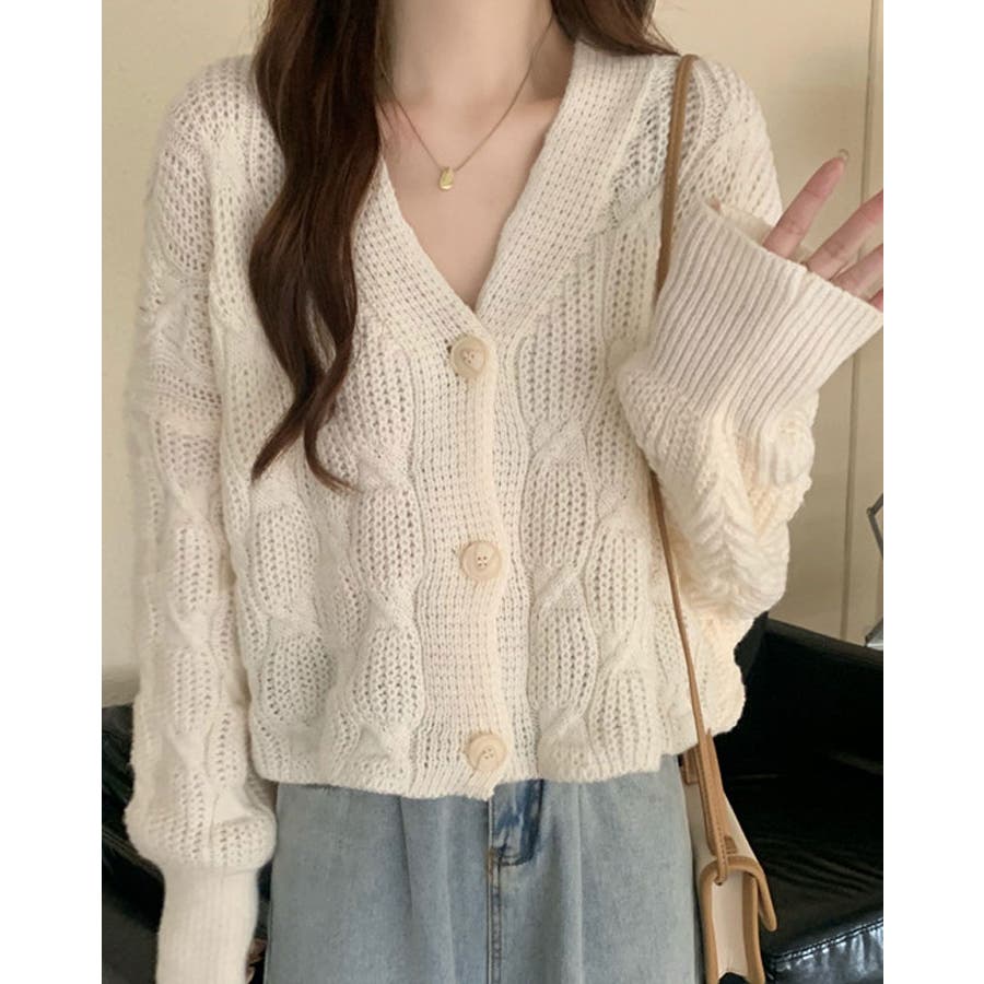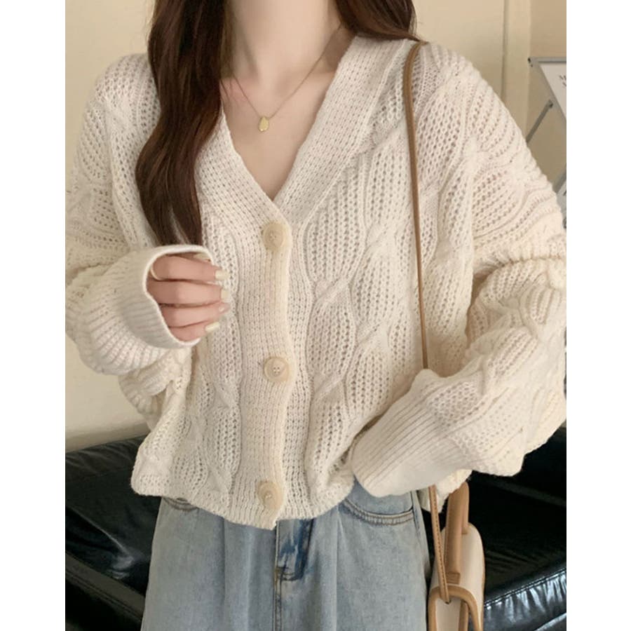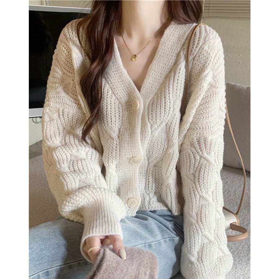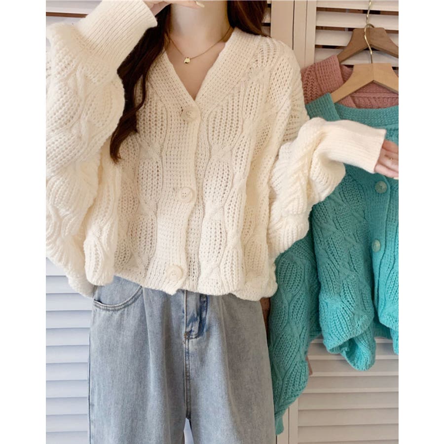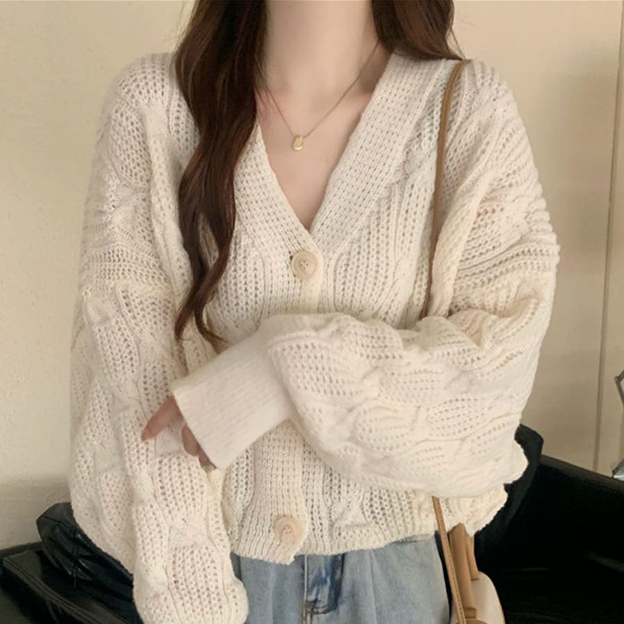 ざっくりした編み立てがこなれた印象◎ウェーブ編みケーブルニットカーディガン
