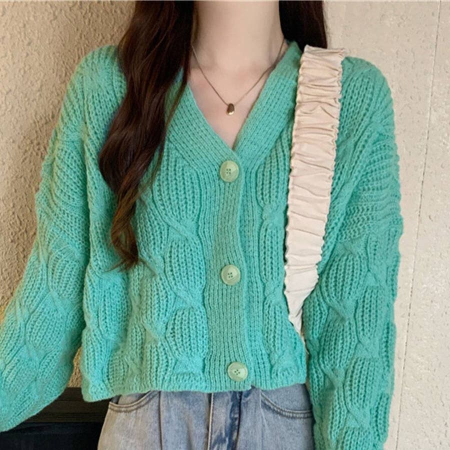 羽織りとしても、ボタンを閉じてニットトップスとしても着回せるマルチな1枚。