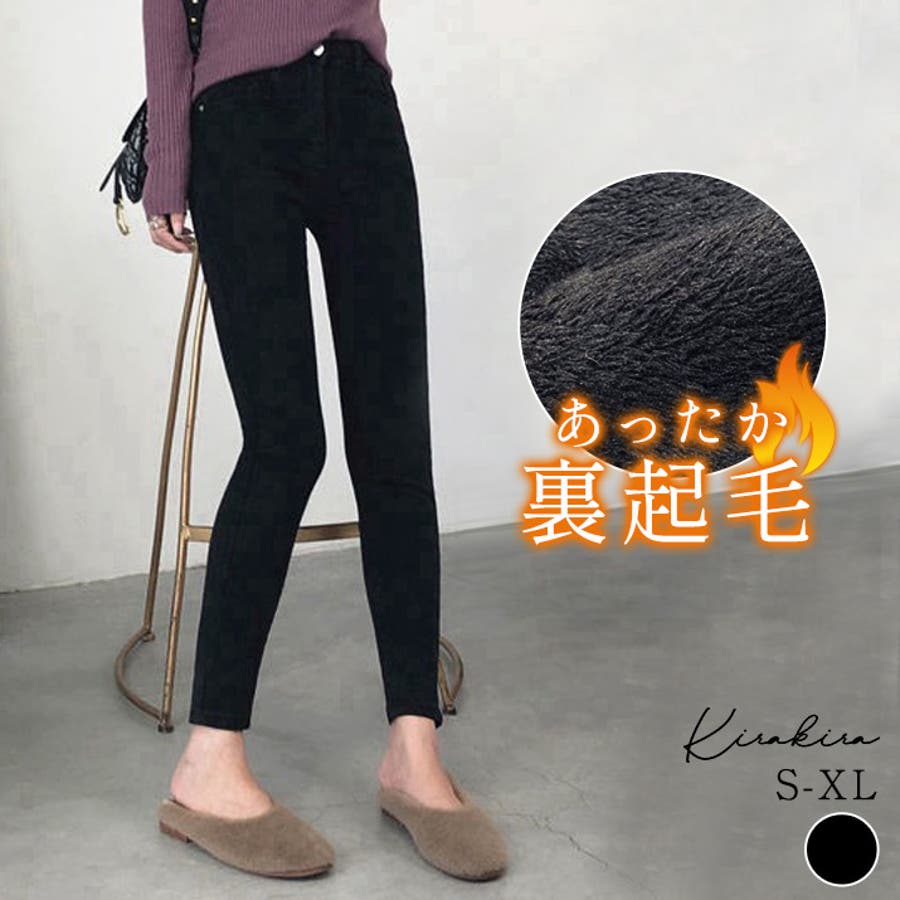 裏起毛ブラックデニムスキニーパンツ ボトムス デニムパンツ