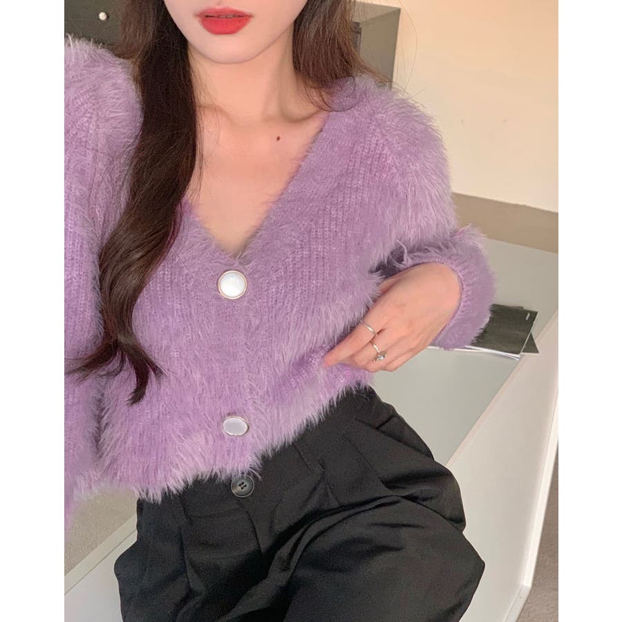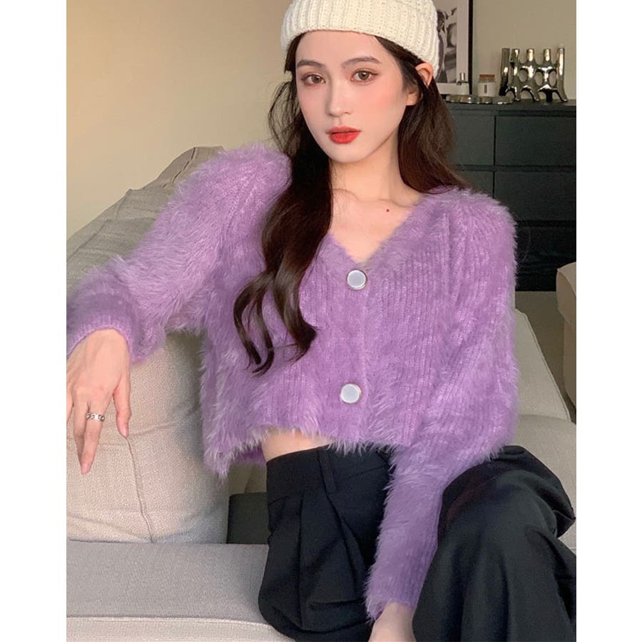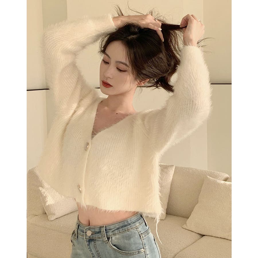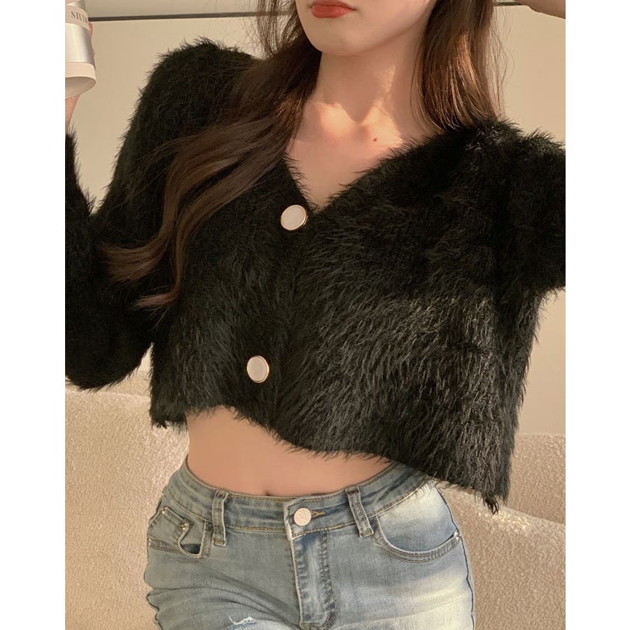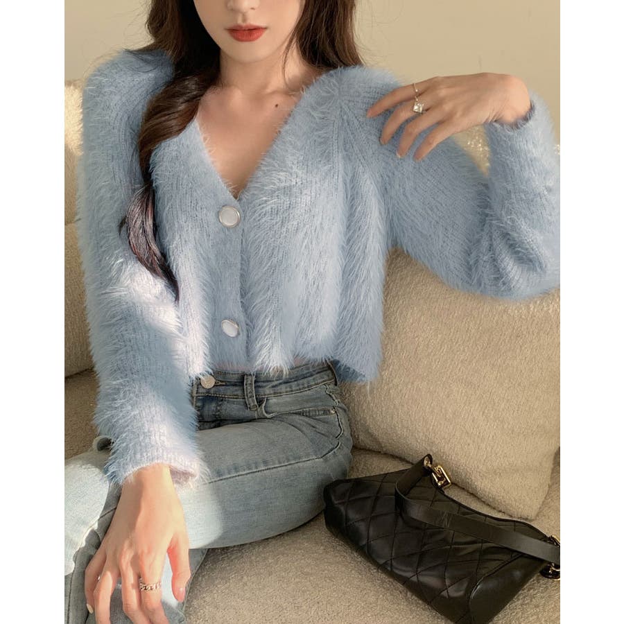 ふわふわシャギーニットカーディガン トップス ニットカーディガン