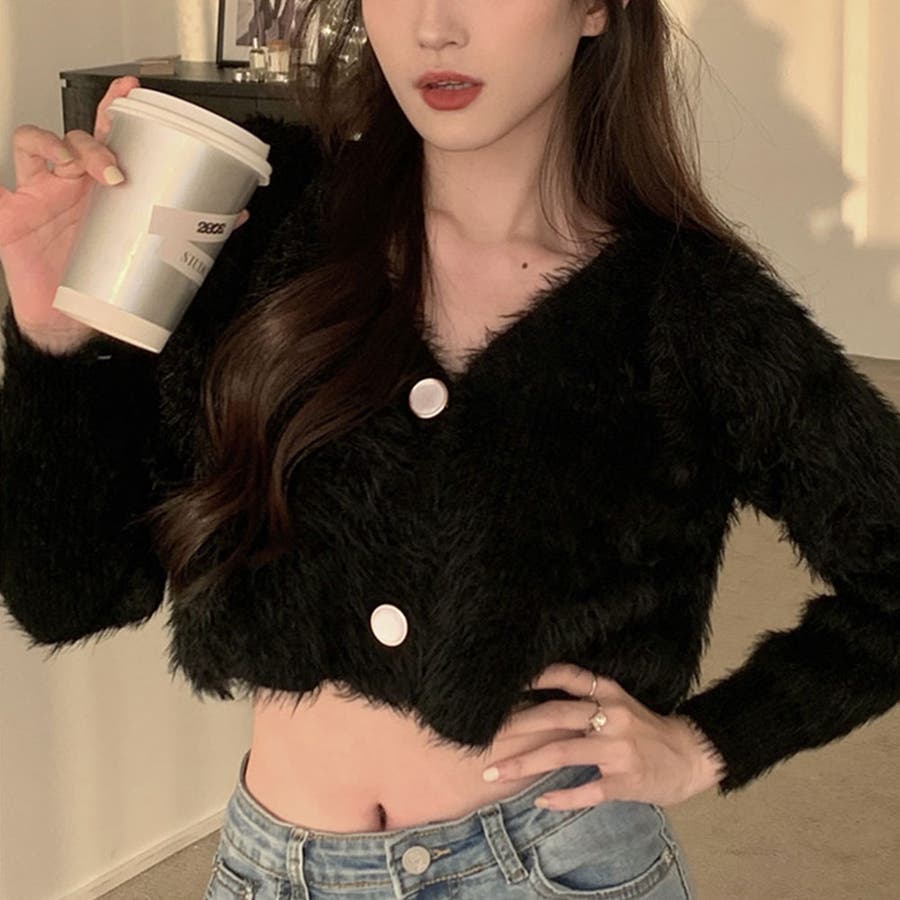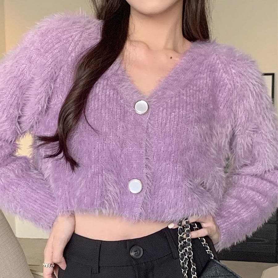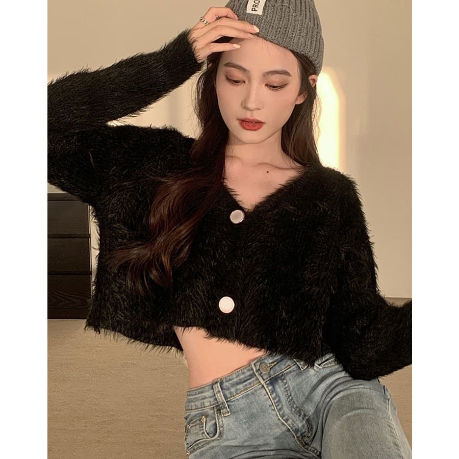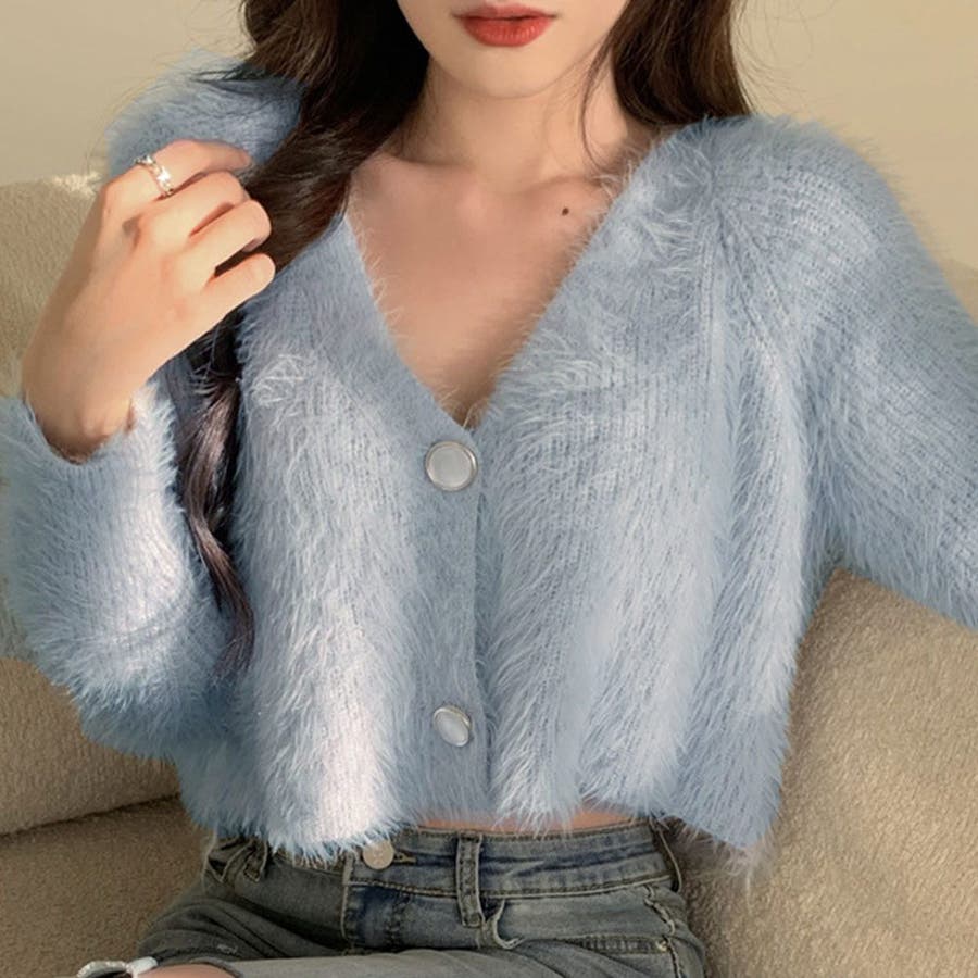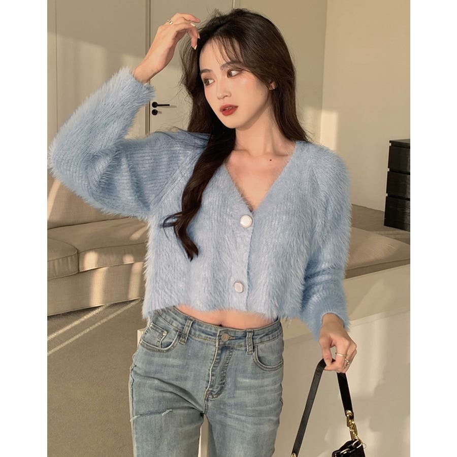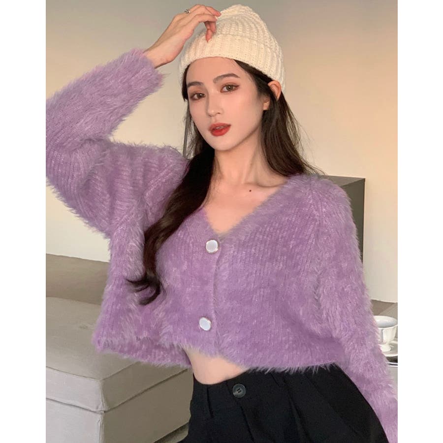 ふわふわシャギーニットカーディガン トップス ニットカーディガン