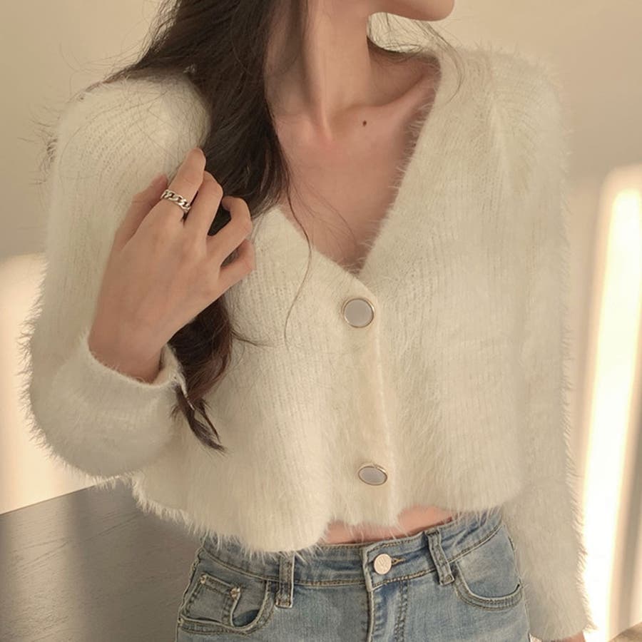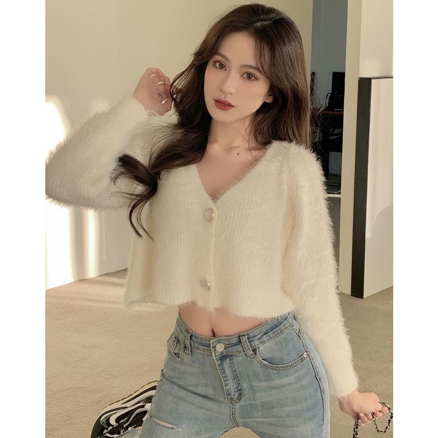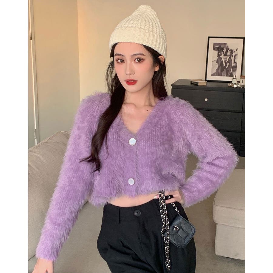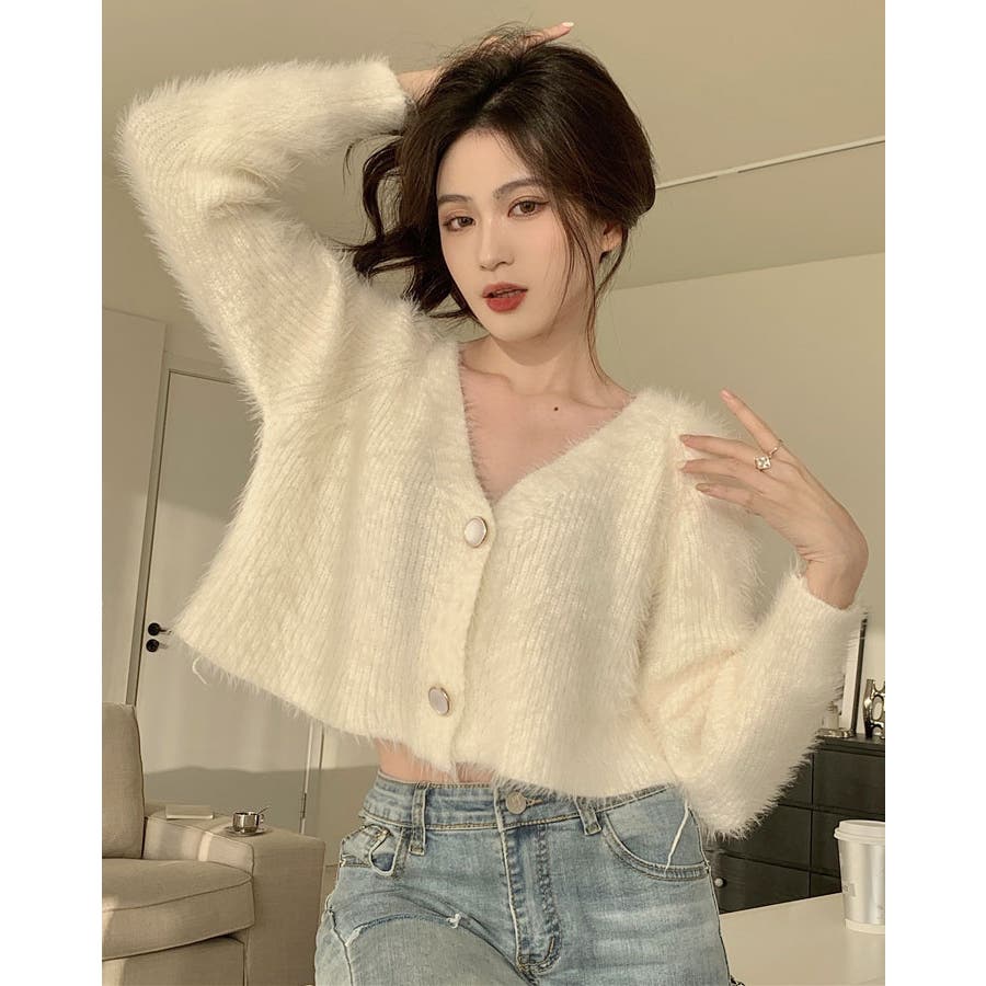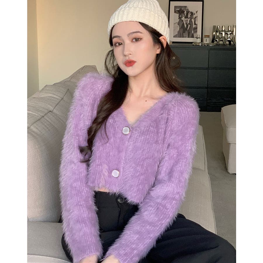 ふわふわシャギーニットカーディガン トップス ニットカーディガン