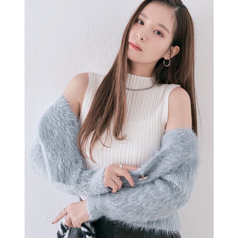 ・女っぽさが上がる毛足長めのふわふわシャギーニット。