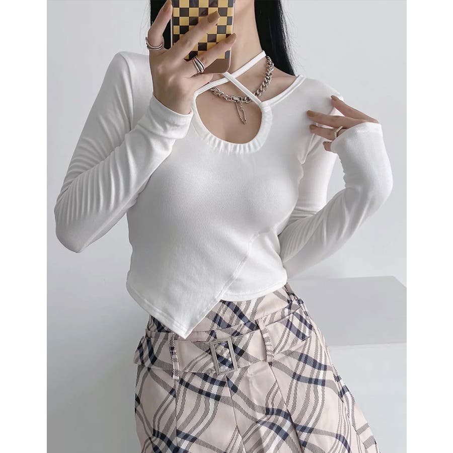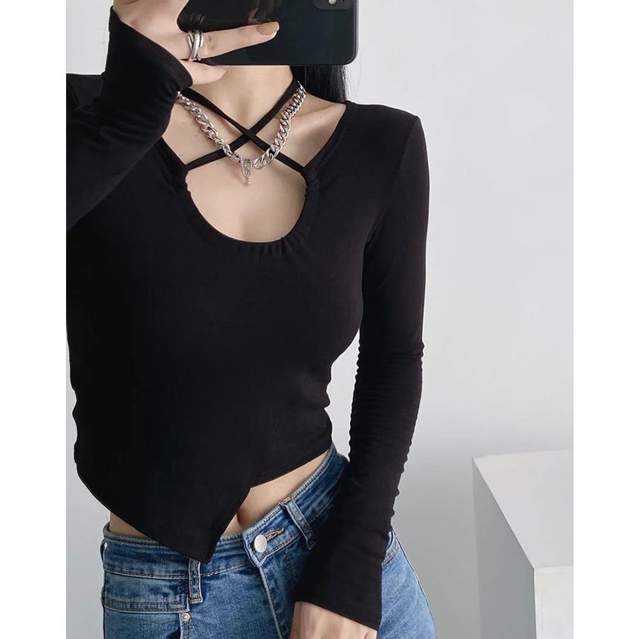 【SHOPLIST限定】ネックリボンストレッチアシメカットソー トップス カット…