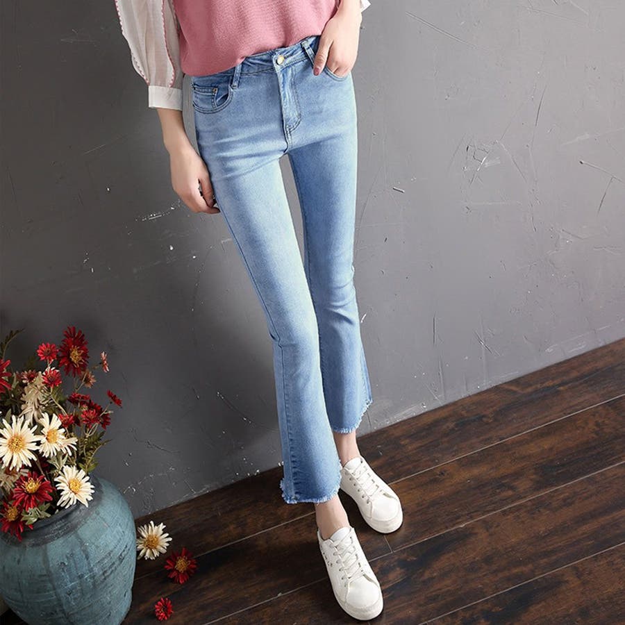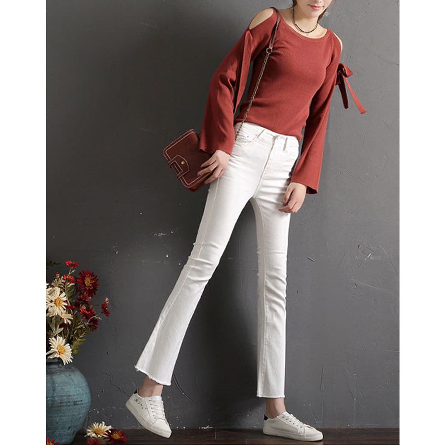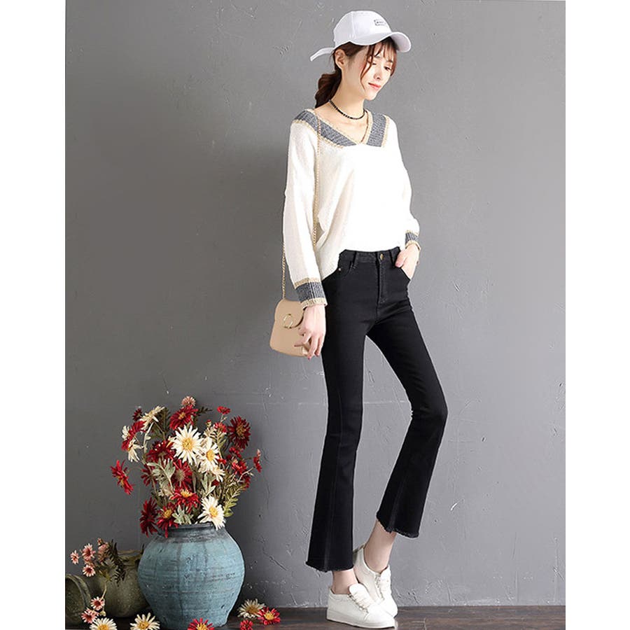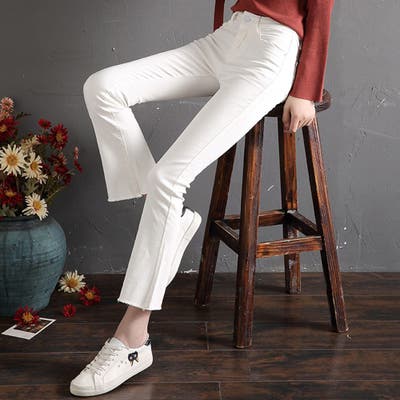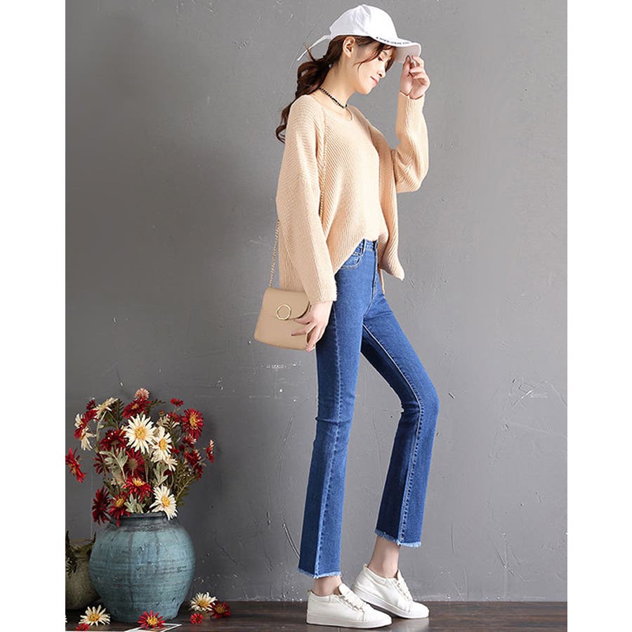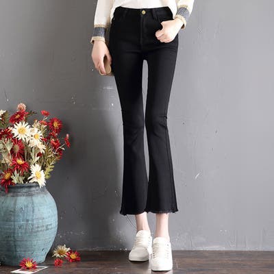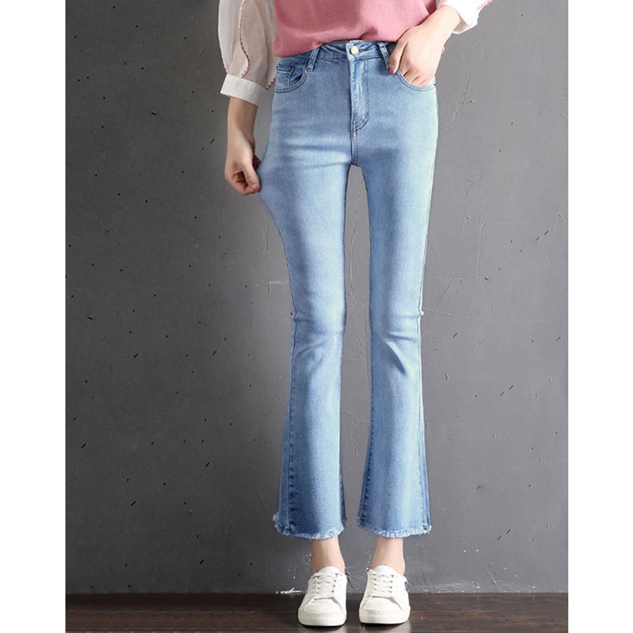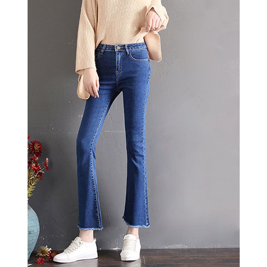 カットオフクロップドフレアデニムパンツ全4色 4サイズ デニムパンツ