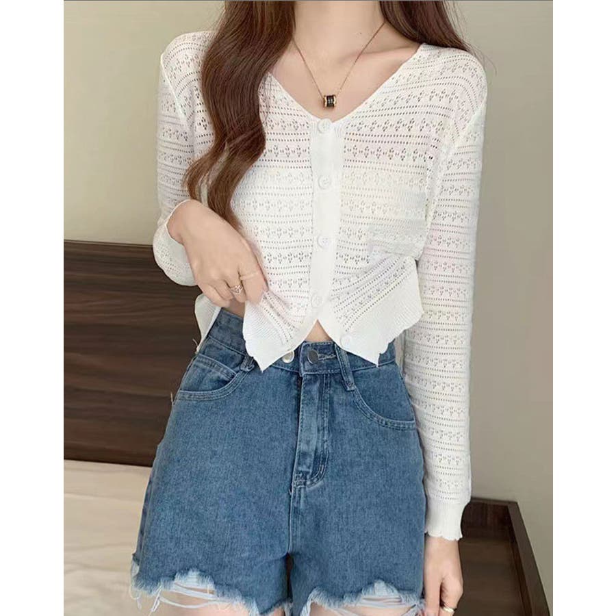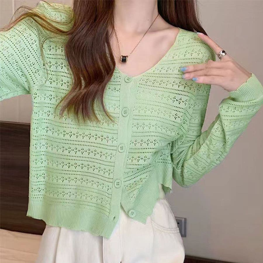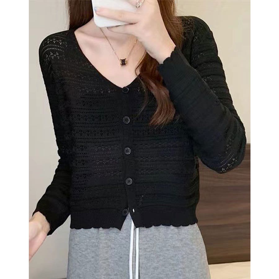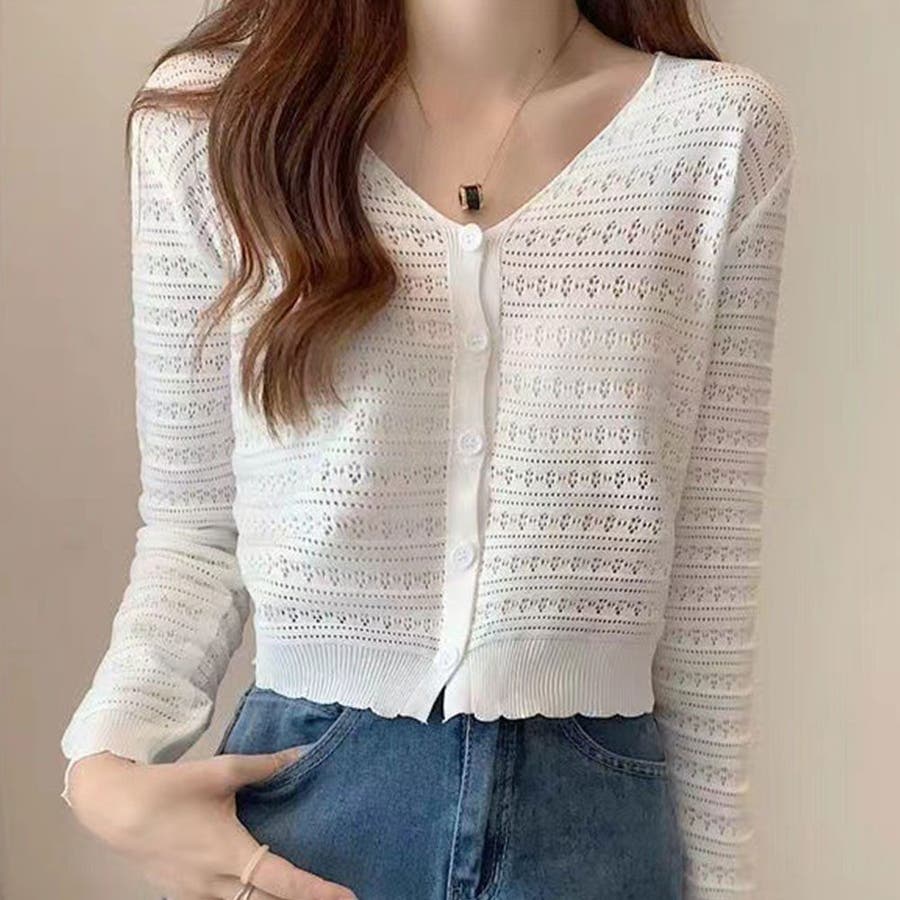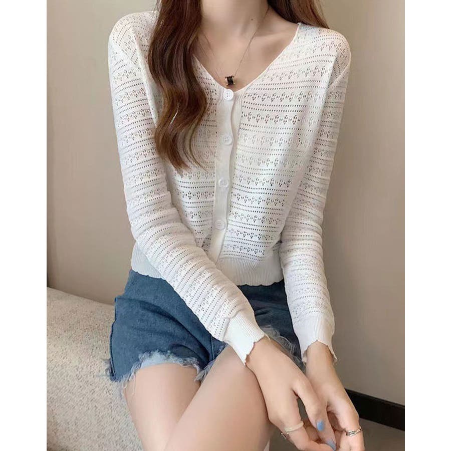 【SHOPLIST限定】透かし編みライトニットカーディガン トップス ニットカー…