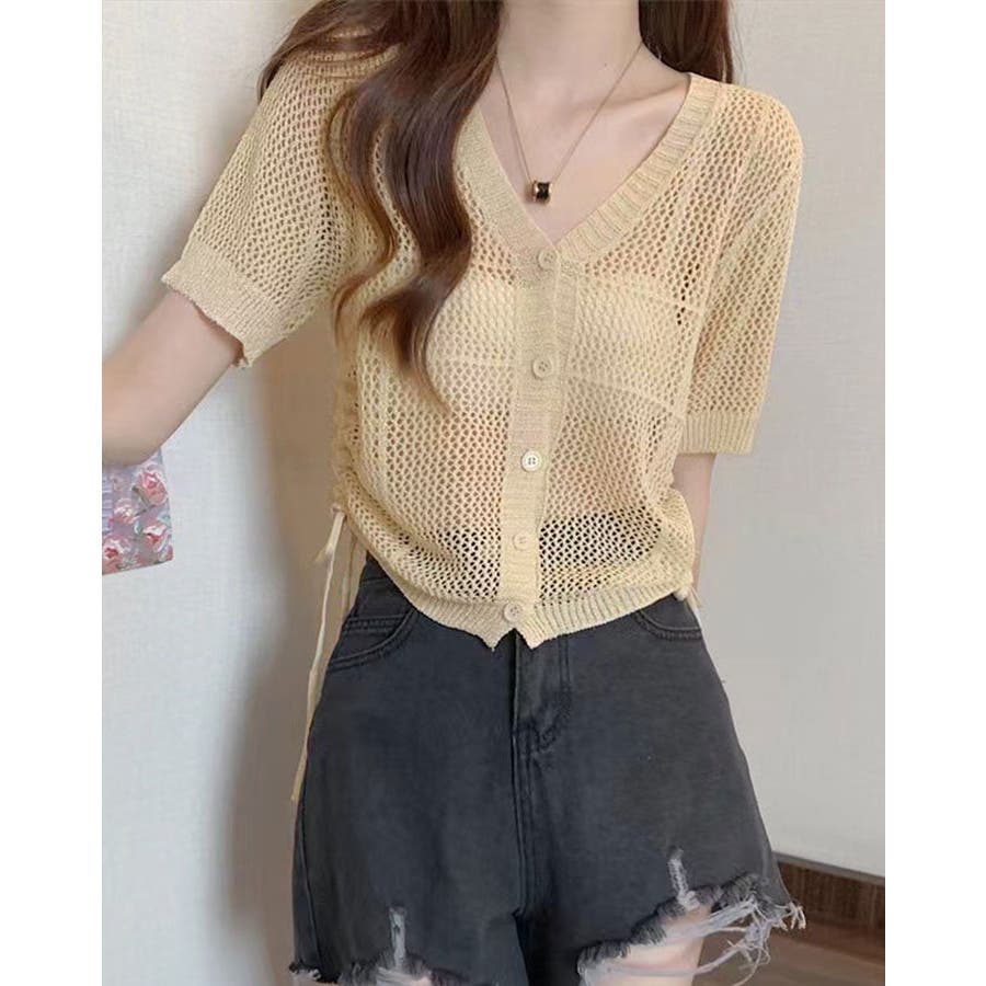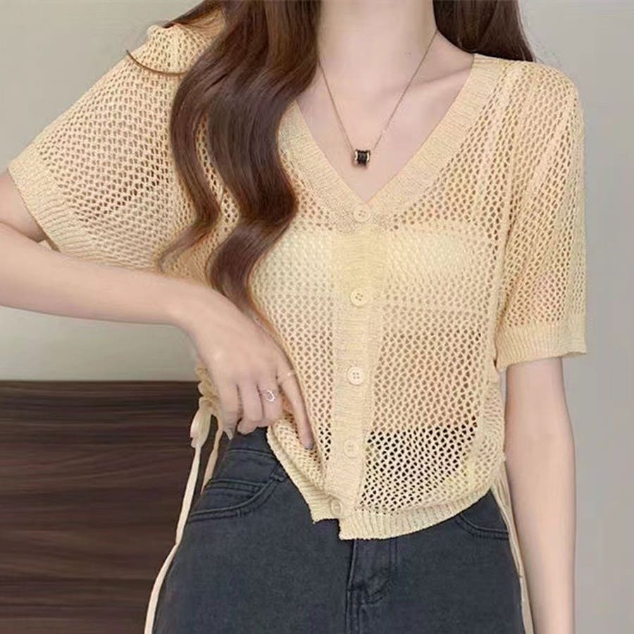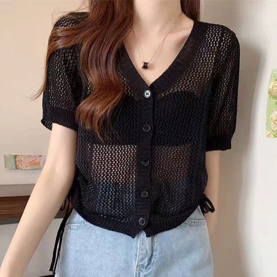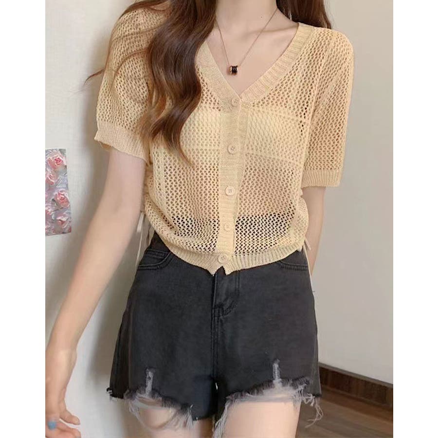 半袖メッシュニットカーディガン トップス ニットカーディガン