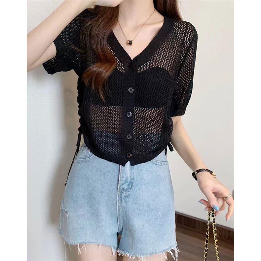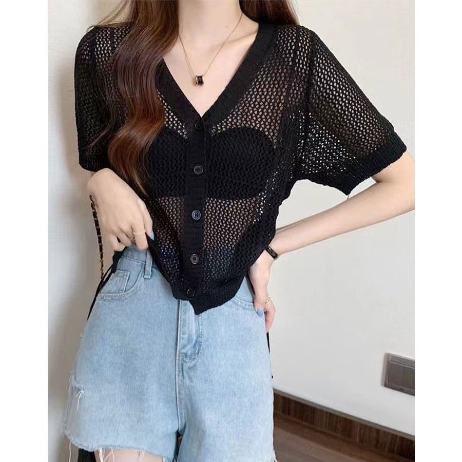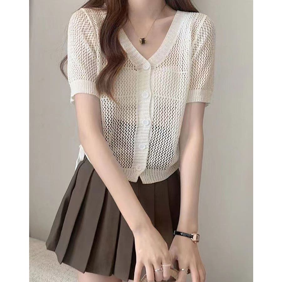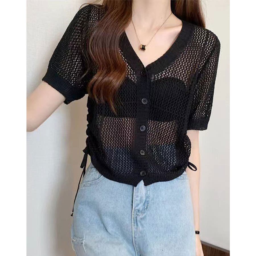 半袖メッシュニットカーディガン トップス ニットカーディガン