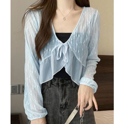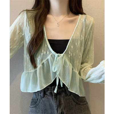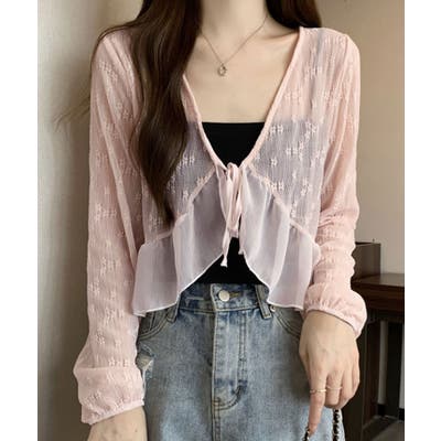 フラワーレースシアーショートカーディガン トップス カーディガン
