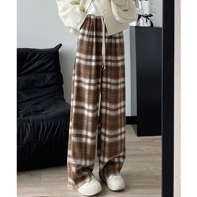 ハイウエストチェックワイド起毛パンツ 3サイズ ボトムス