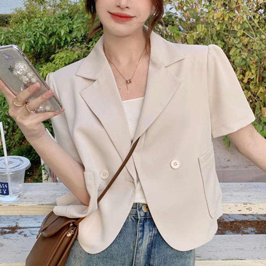 ・コンパクトな着丈でありハンサムルックになりすぎず女性らしいルックスに。