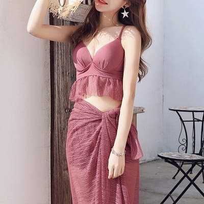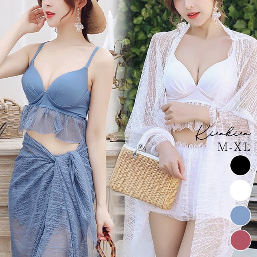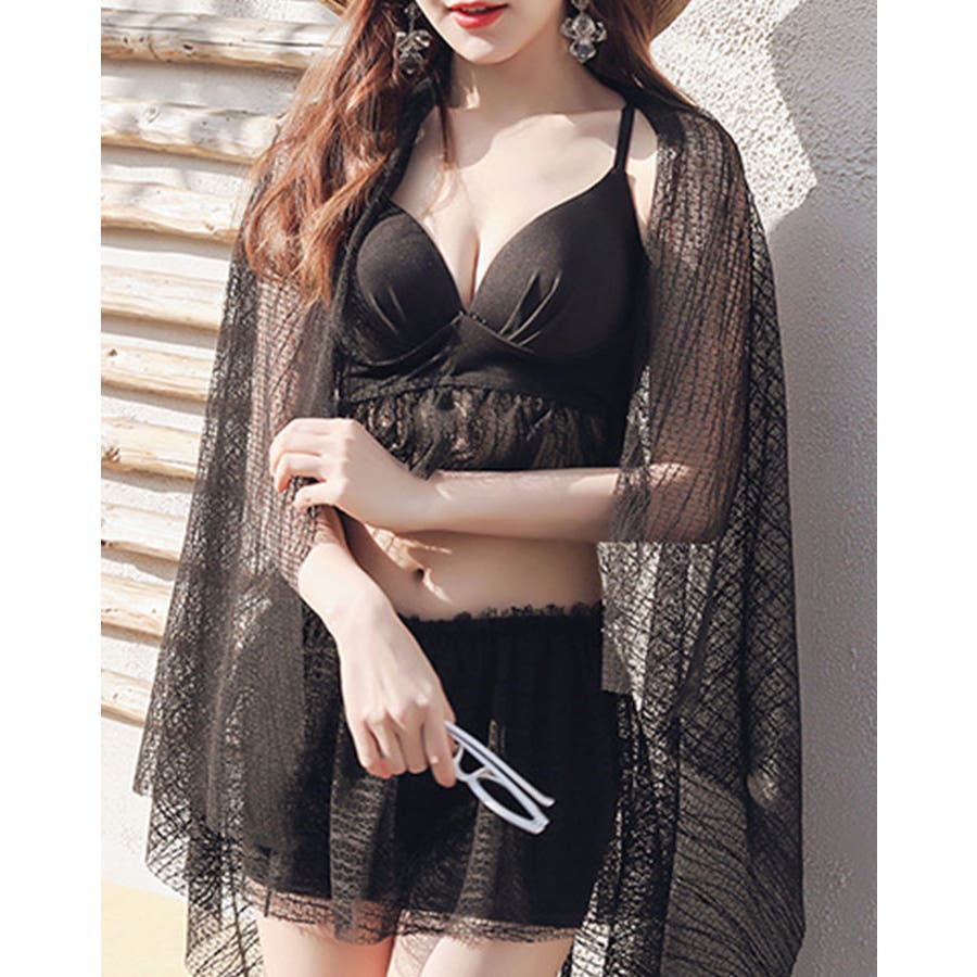 《水着》透け感がセクシーなレース調ストール付きスリムビキニ