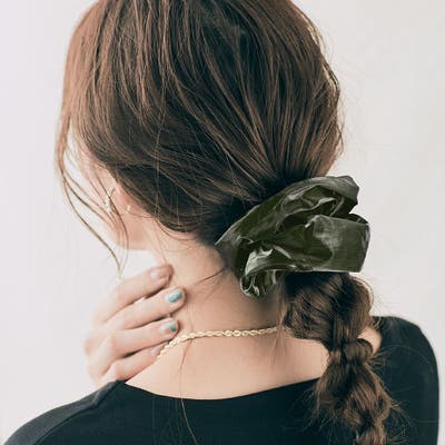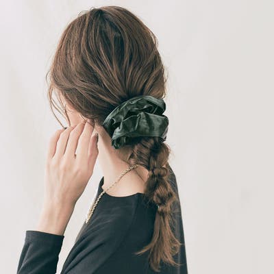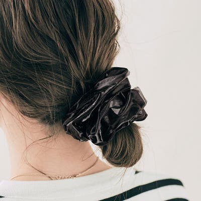 ●程よく個性的なメタリックサテンで仕立てたボリュームシュシュ。