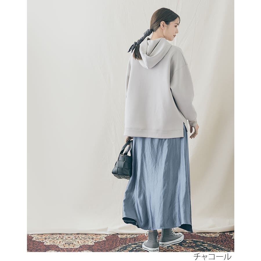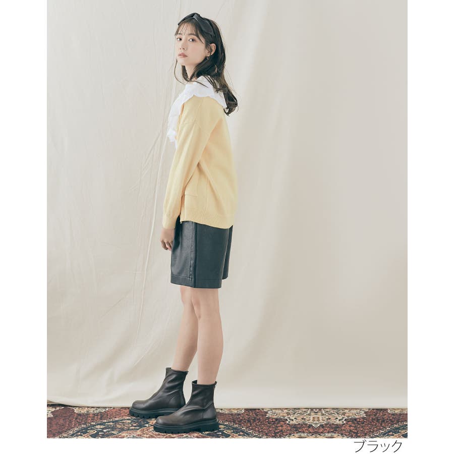 ●さり気ないシボ感が上品なエコレザー。柔らかくしなやかな素材感でハードに見せず、女性らしい雰囲気に。