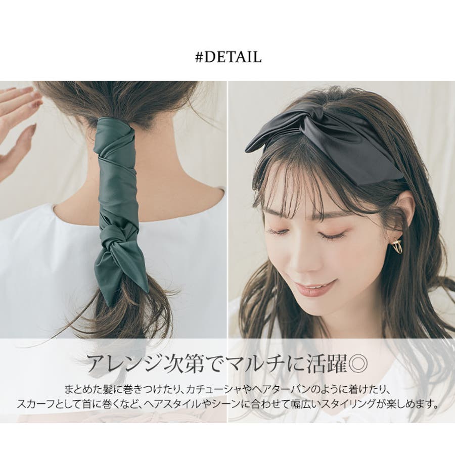 ●まとめた髪に巻きつけたり、カチューシャやヘアターバンのように着けたり、スカーフとして首に巻くなど、ヘアスタイルやシーンに合わせて幅広いスタイリングが楽しめます。