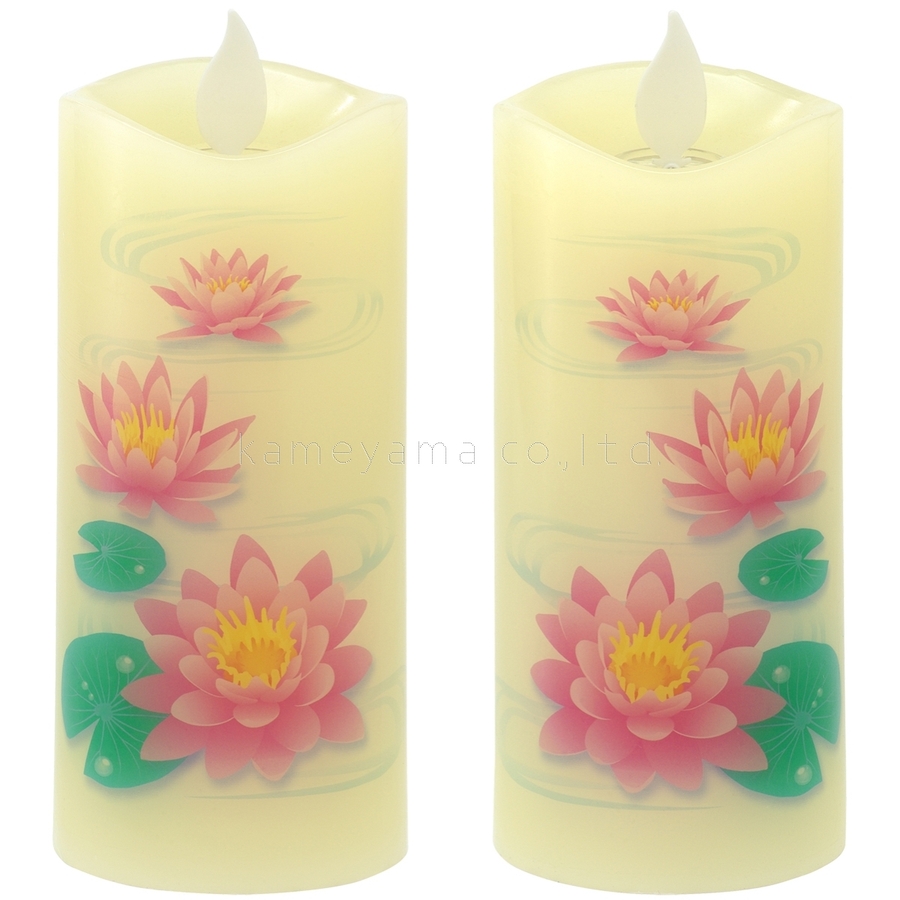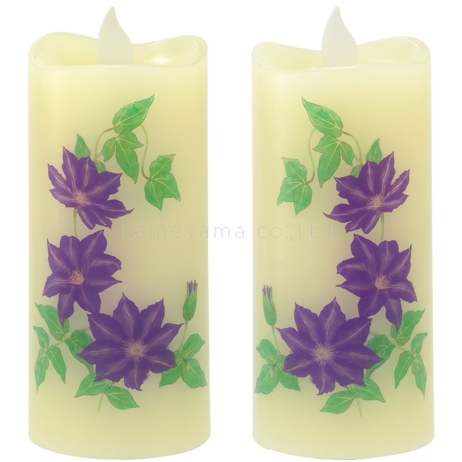 表と裏に異なる花柄をあしらい、自然な炎のゆらぎを再現したLEDロウソクです。