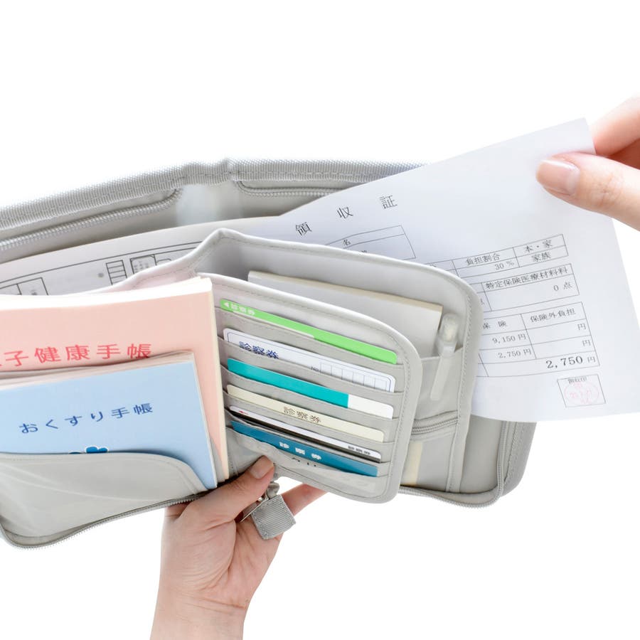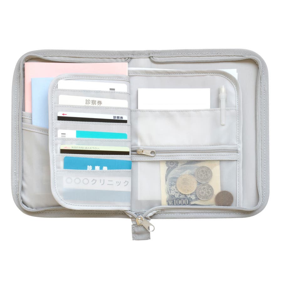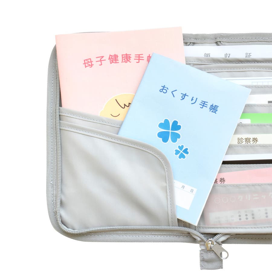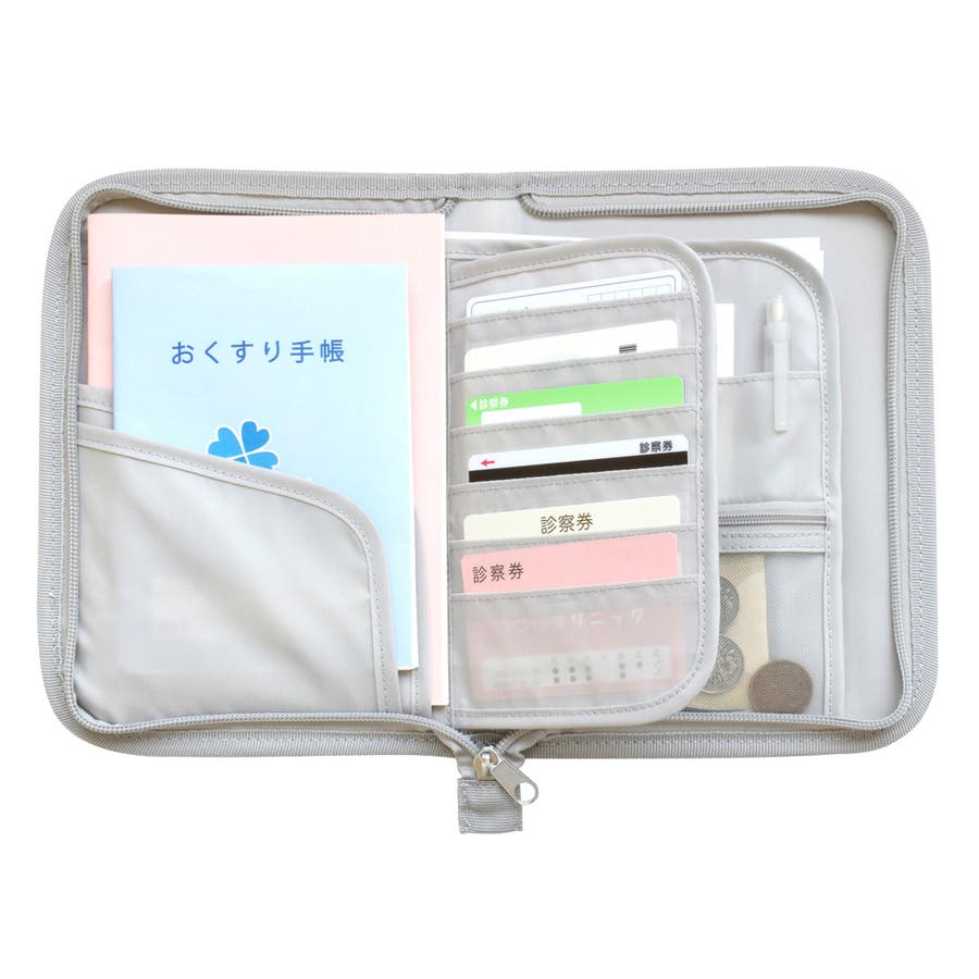 家族分の診察カードがスッキリ見やすく収納できるカードポケット付き。