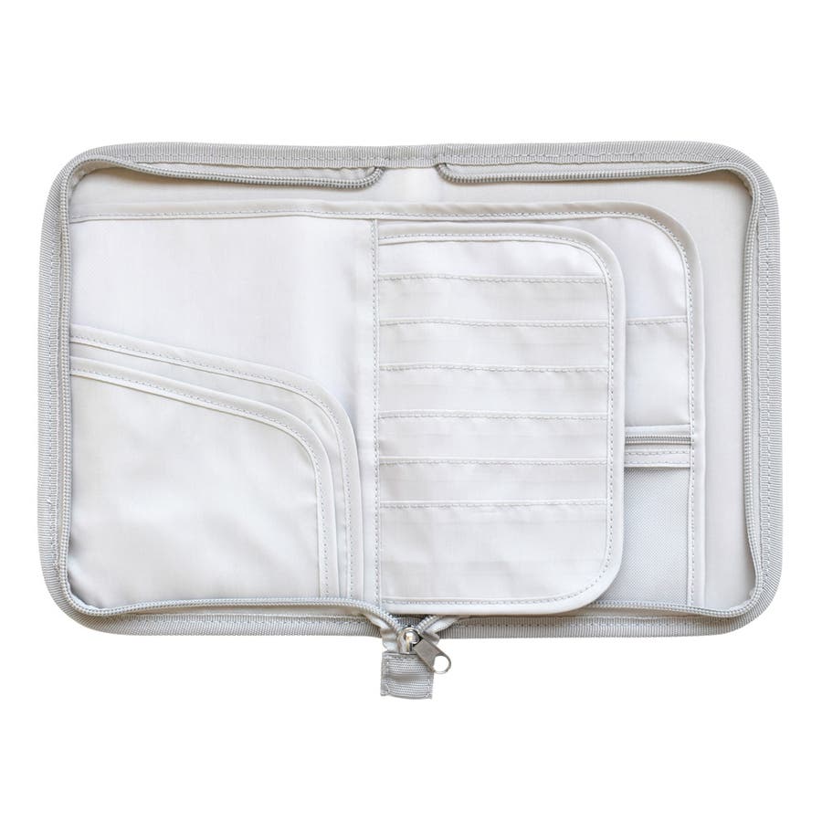 お薬の処方箋や診察予約券などの用紙も入るL型ポケット付き。