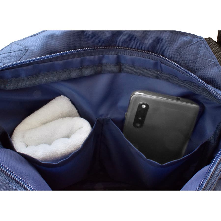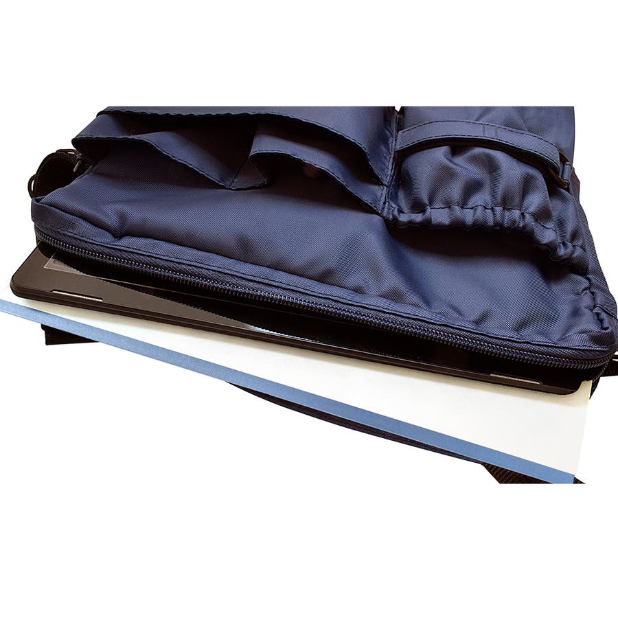 ・B5ノートやタブレットも収納できる大き目のポケットはファスナー付き。マチも3.5cmあるので、たっぷり収納が出来ます。