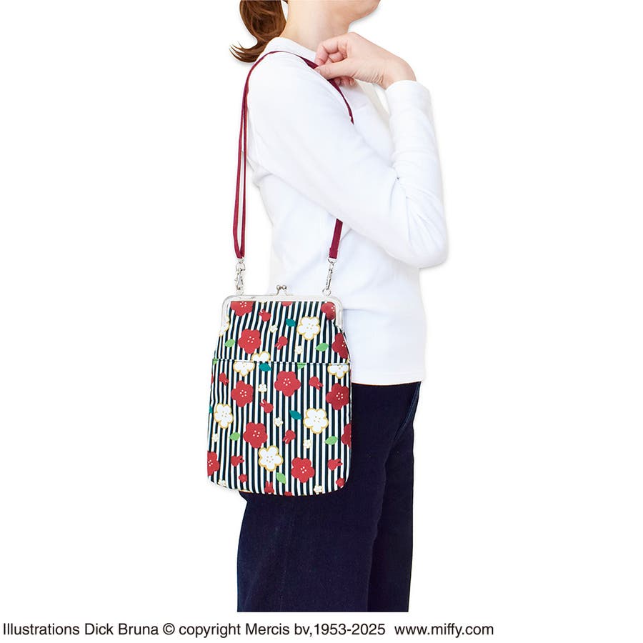 ミッフィー 御朱印帳ポーチ(がま口) 縞梅