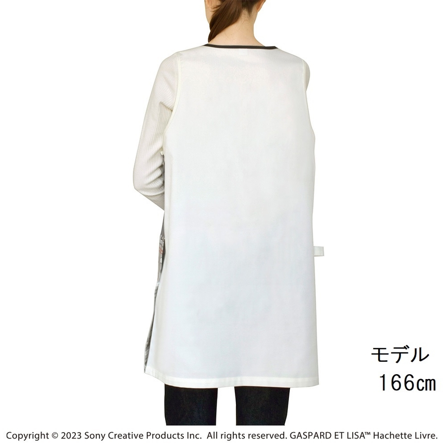 | 素材 | ■材質:(本体生地)ポリエステル 80%・綿 20%、(プリント生地)ポリエステル100% ■商品サイズ:M-L(フリー)・バスト79cm-94cm・身巾54cm・身丈84cm・裾巾65cm ■商品重量:(約)236g ■仕様:サイドボタン式、前ポケット×2、タオルホルダー■生産国:中国 |