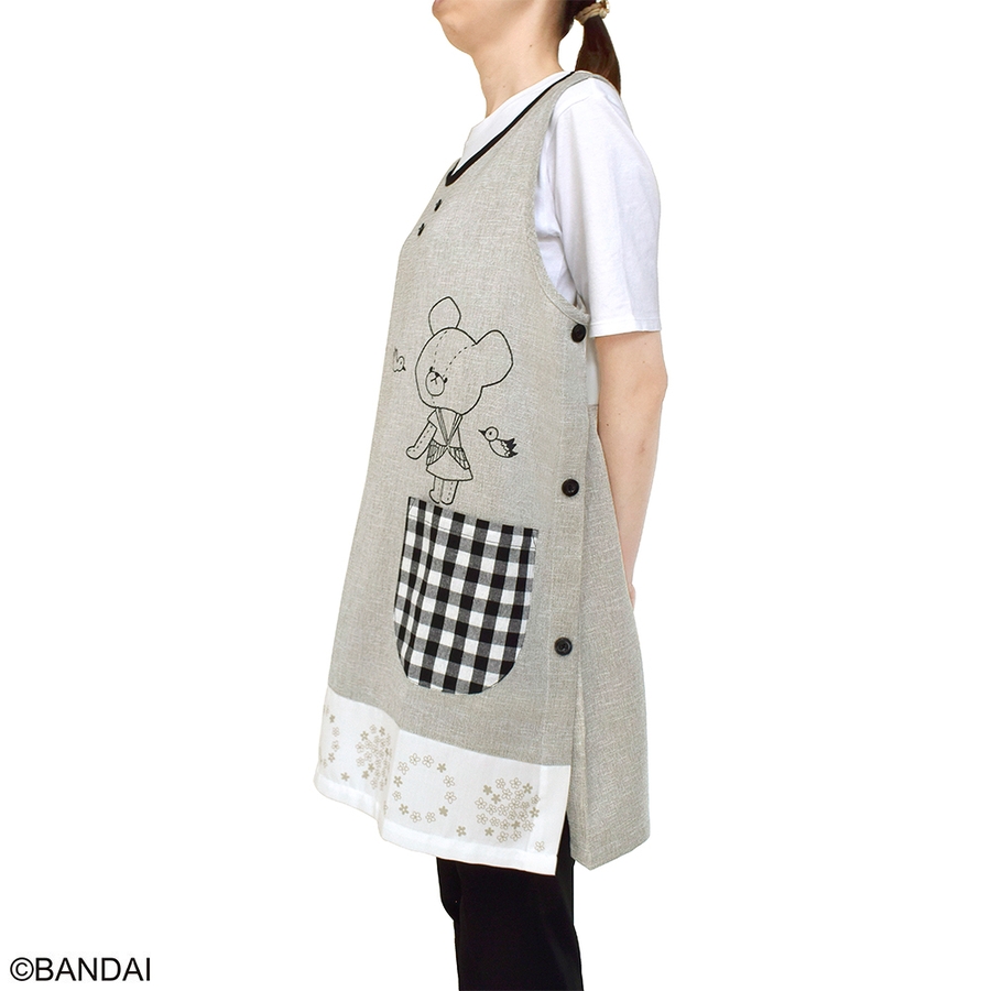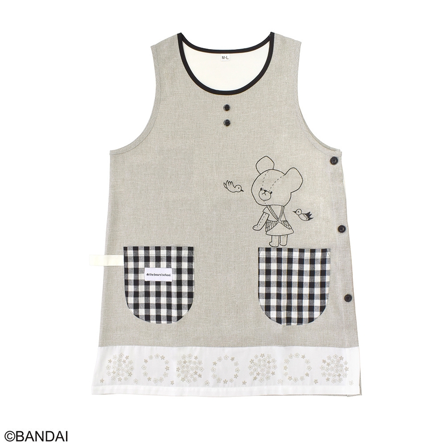 素材 | ■材質:(本体生地)ポリエステル 98%・綿 2%、(後ろ身上部生地)ポリエステル65%・綿 35% ■商品サイズ:M-L(フリー)・バスト79cm-94cm・身巾54cm・身丈84cm・裾巾65cm ■商品重量:(約)230g ■仕様:サイドボタン式、前ポケット×2、タオルホルダー■生産国:中国 |