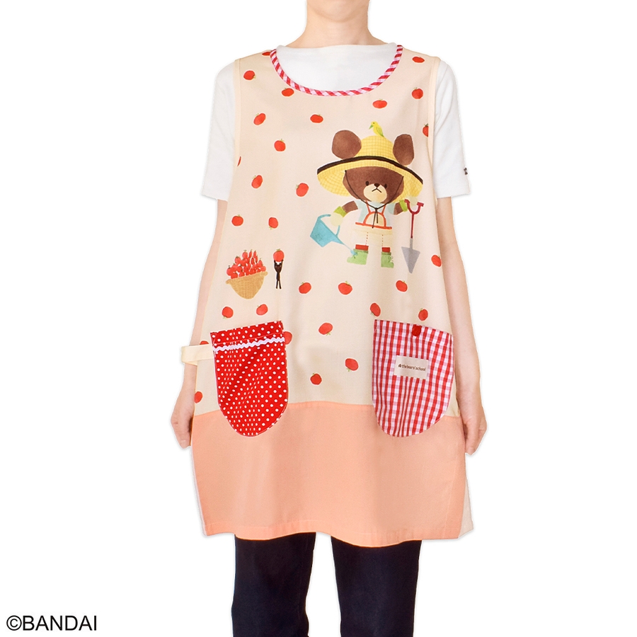元気なコーラルカラーとトマトを作っているジャッキーのアートを組み合わせた昇華プリントの可愛いデザイン!