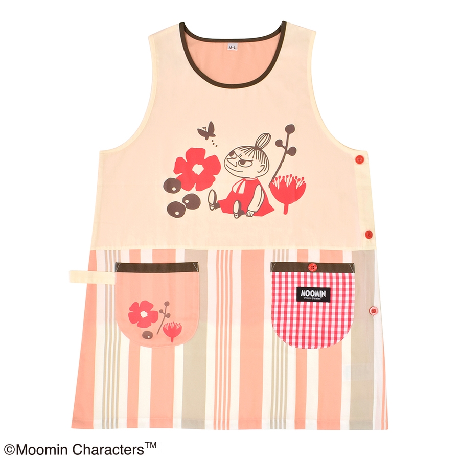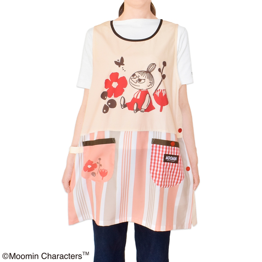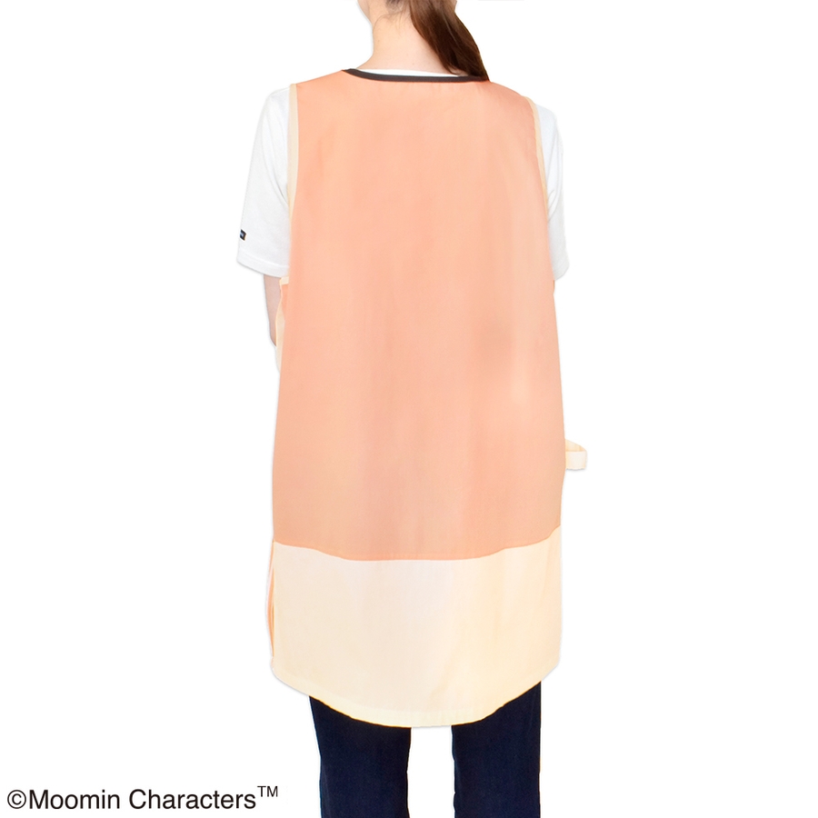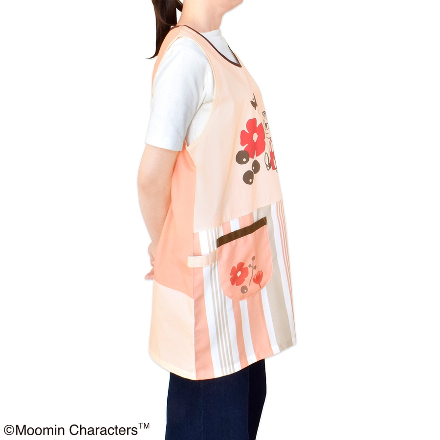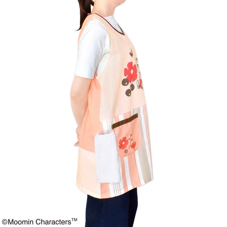 ムーミン エプロン コーラルピンク/ベージュ (スタンダード脇ボタンタイプ)