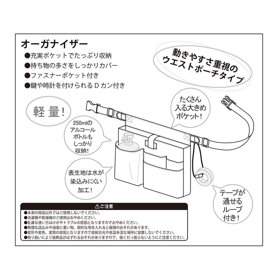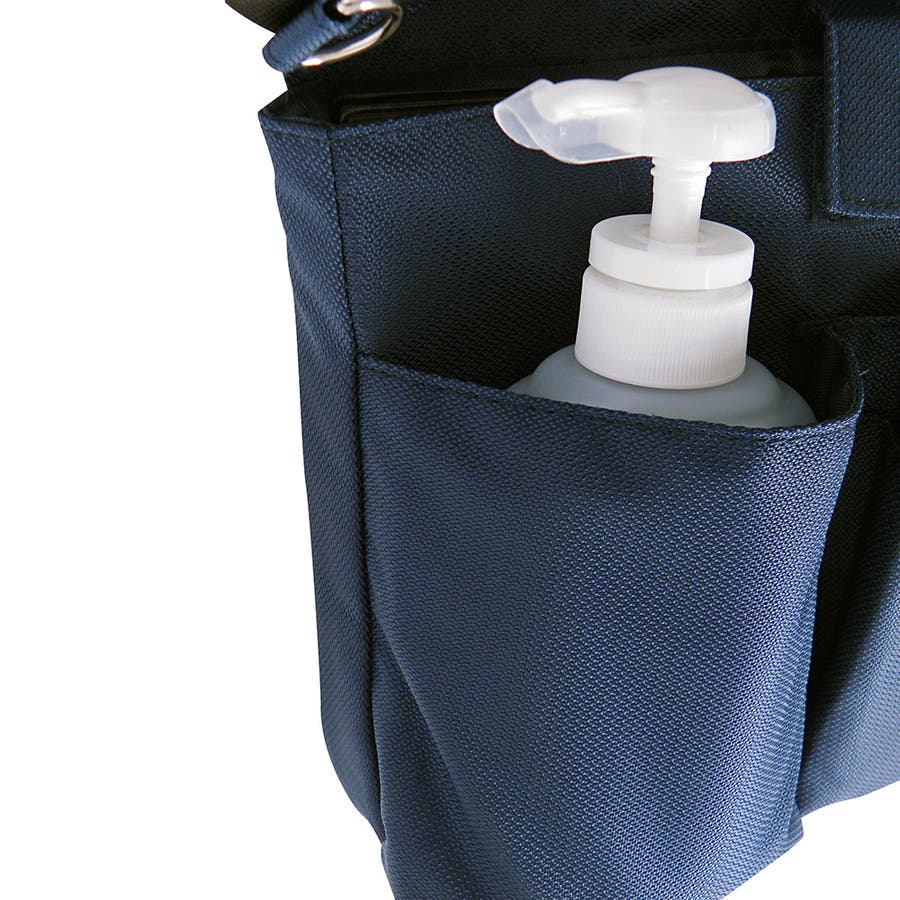 ・250mlの消毒液や500mlのペットボトルも入れられるポケット×1