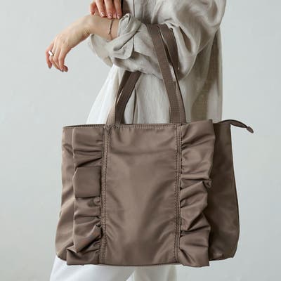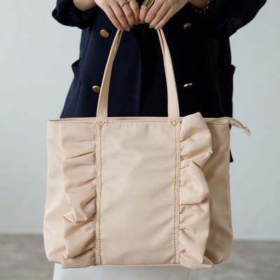 フリルが大人かわいいデザインのトートバッグはA4収納可能