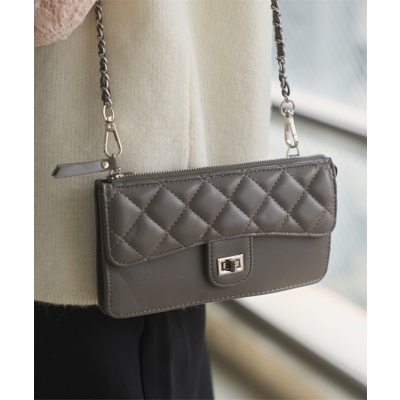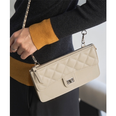 スマホやカード、お札など、必要なものをすっきりまとめられるちょうどいいサイズ感。手になじむスリムなフォルムで、小さめバッグにも収まりやすいのが嬉しいポイントです。上品なキルティングデザインと繊細なチェーンが、コーディネートにさりげない華やかさをプラス。必要なものだけをスマートに持ち歩ける、洗練された印象のチェーンウォレットです。