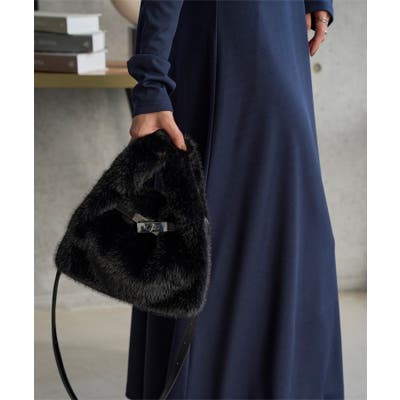 柔らかな質感で触り心地の良いフェイクファー素材。コンパクトな見た目ながらマチもあり最低限の荷物は収納可能なサイズ感。長さ調整可能なショルダーストラップで肩がけ、斜めがけ、ハンズフリーでお持ちいただけます。