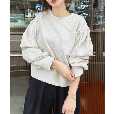 綿混で肌ざわりが良いスウェット素材。薄すぎず厚すぎないのでロングシーズン着用できます。ショートは短すぎない丈感で程よくボリュームのある袖が特徴的。ロングはゆとりのあるサイズ感で男女問わず着ていただけます。ボトムを選ばない万能アイテムです。